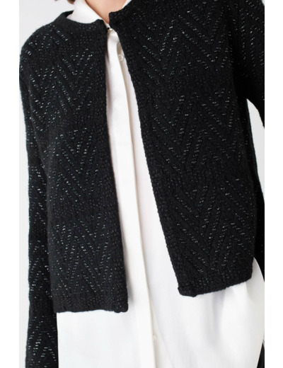 Ce bolero vous garantit une allure soignée et une grande liberté de style. Sa matière douce et légèrement brillante grâce au fil métallisé ajoute une dimension précieuse à votre look, tout en restant facile à porter au quotidien. Facile à entretenir, il conserve sa forme et son éclat lavage après lavage.