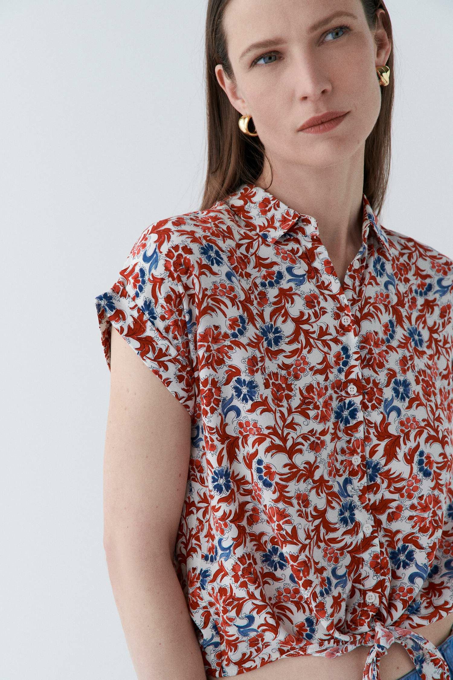 Conçu pour allier style et praticité, ce chemisier se distingue par son col classique et ses manches courtes, parfaits pour la saison chaude. La taille à nouer souligne la silhouette avec subtilité, tandis que sa longueur maîtrisée garantit une tenue équilibrée et moderne. Facile à associer, il apporte une touche de fraîcheur à toutes vos tenues.