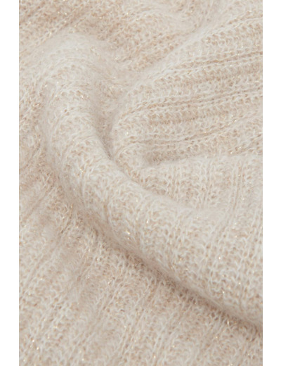 Dimensions 35x31 cm, taille unique. Tissu principal : polyamide 33%, acrylique 27%, alpaga 26%, laine 9%, fil métallisé 5%. Lavage à la main à l’eau froide recommandé. Repassage possible à basse température (maximum 110°) sans vapeur. Interdit en machine.