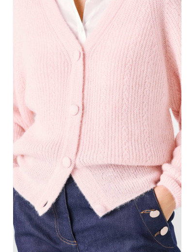 Tissu principal : 42% acrylique, 33% alpaga, 25% polyamide. Longueur 73 cm (taille S). Col V échancré, manches longues. Lavage à la main recommandé pour préserver la qualité et la douceur du tissu. Modèle fabriqué en Italie.