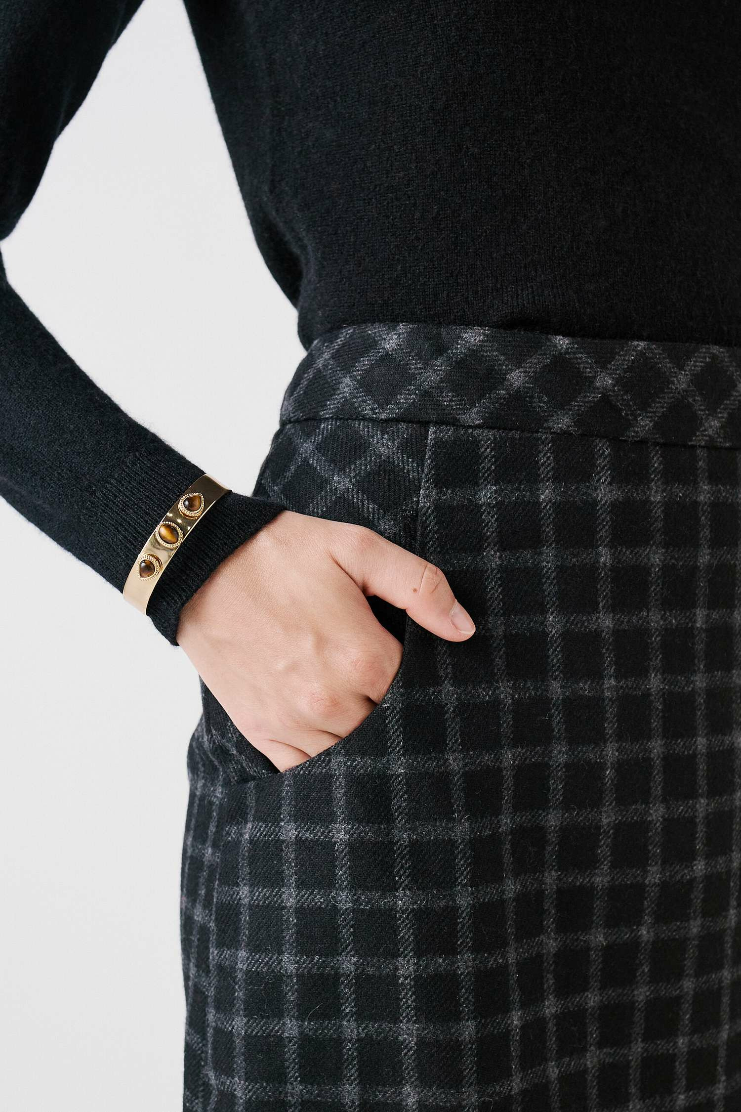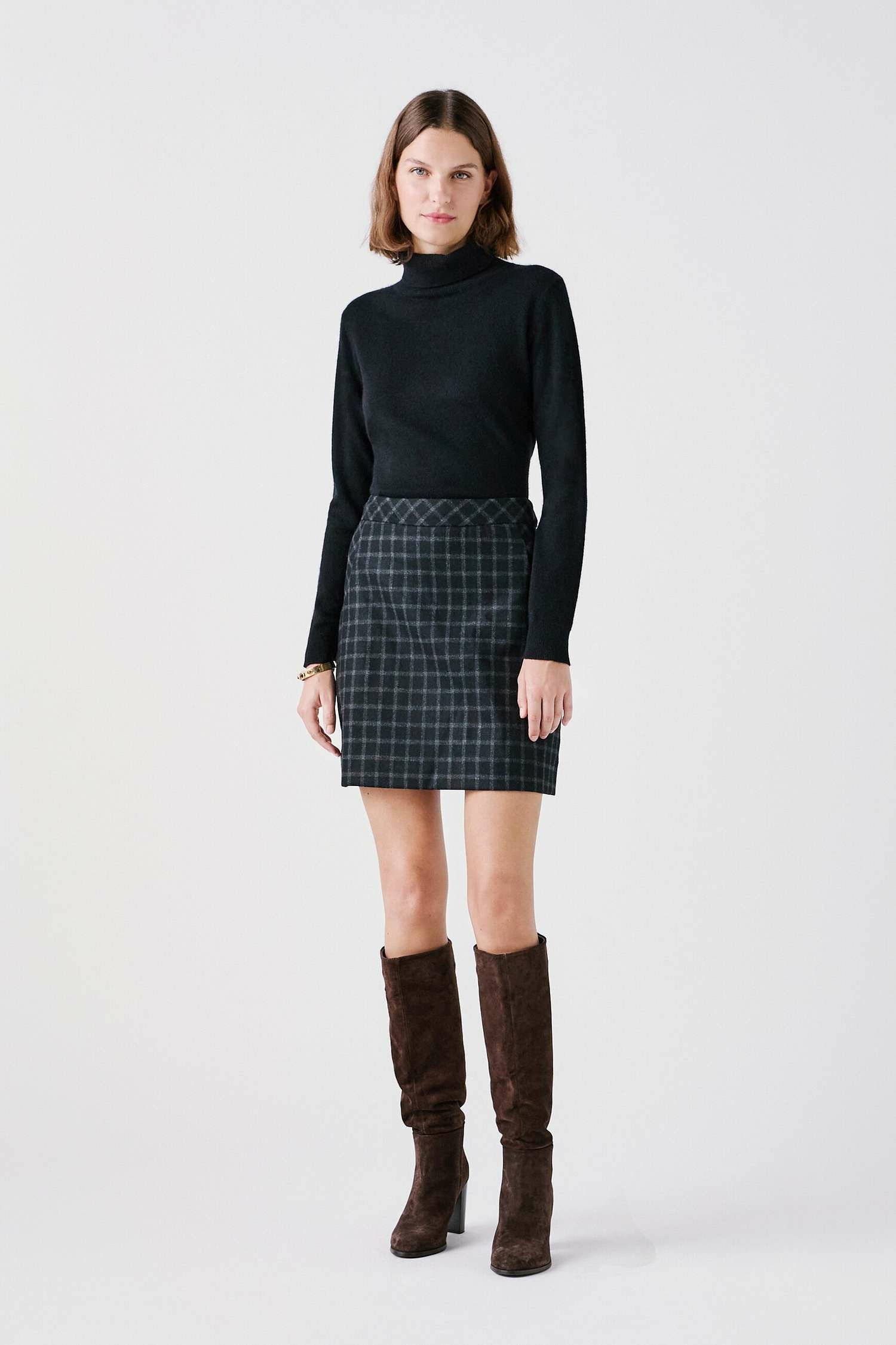 Réponse : Elle se porte parfaitement avec un pull col roulé noir et des bottes hautes pour un look casual chic, ou avec un chemisier fluide et des escarpins pour une tenue professionnelle.