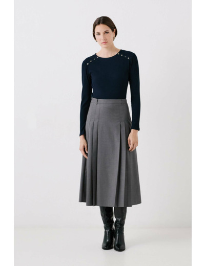 Cette jupe plissée vous accompagne du bureau à vos sorties avec aisance, grâce à sa matière légère et sa coupe qui épouse les mouvements. Facile à associer, elle apporte une touche de raffinement sans effort à votre garde-robe.