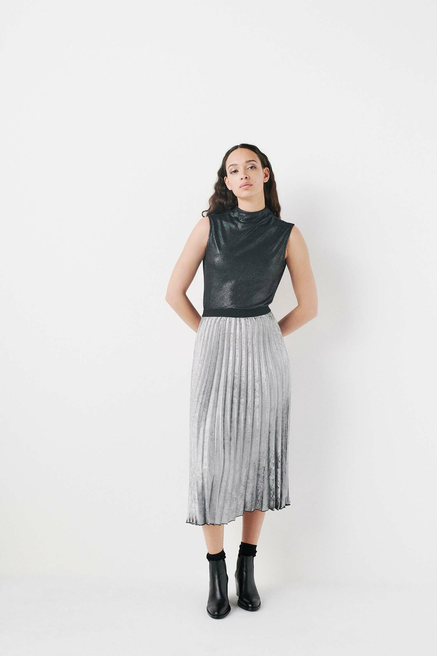 Sublimez votre silhouette avec la jupe longue plissée joe2, un modèle qui capte la lumière grâce à sa couleur irisée unique. Alliant élégance et modernité, elle devient la pièce maîtresse de votre garde-robe.