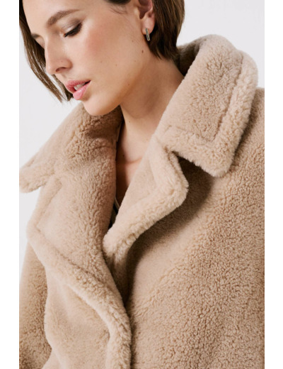 Conçu pour affronter les journées froides avec style, ce manteau en fausse fourrure offre une douceur et une chaleur incomparables. Son col tailleur structuré et sa fermeture boutonnée renforcent son allure chic et soignée. Polyvalent, il se porte aussi bien avec un jean évasé et un pull col V pour un look décontracté que sur une robe midi fluide et des bottines à talons pour une tenue plus sophistiquée.