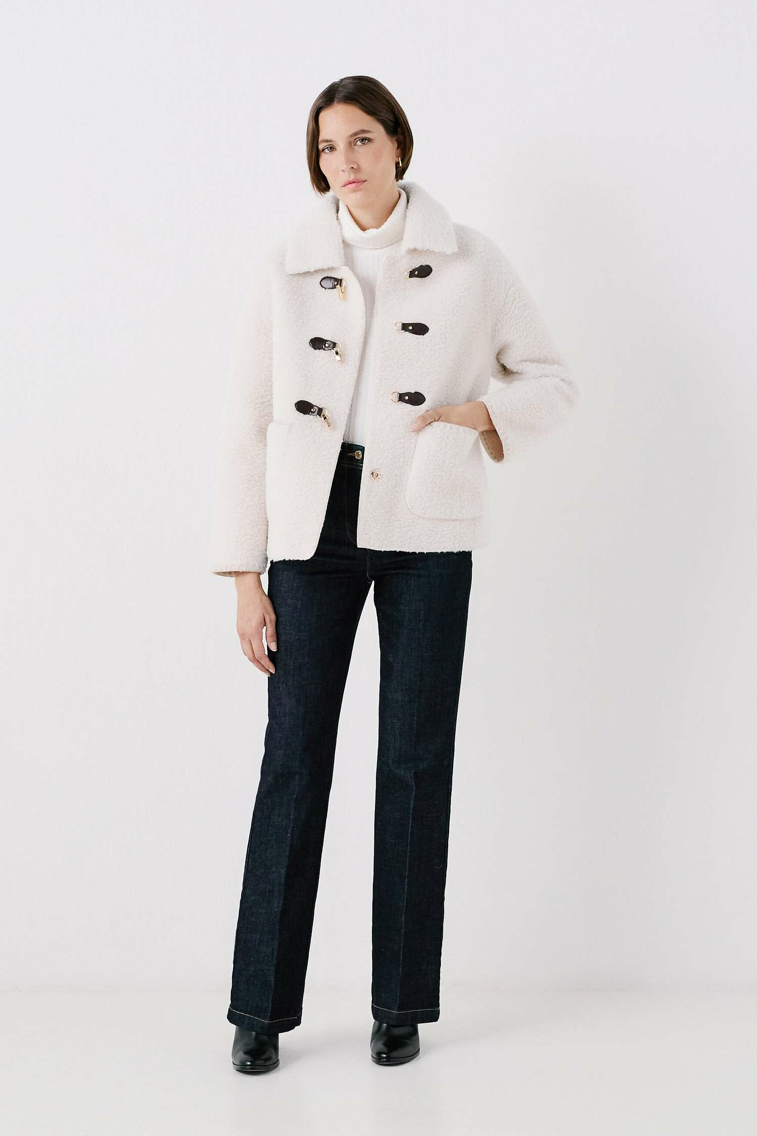 Conçu pour envelopper votre silhouette avec élégance, ce manteau court affiche un col chemise structuré et des manches longues qui soulignent la simplicité raffinée de sa ligne. La couleur unie met en valeur la texture soyeuse du tissu, tandis que les poches plaquées apportent une touche pratique et discrète. Sa fermeture par pinces métallisées ajoute une note moderne et sécurisée.