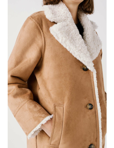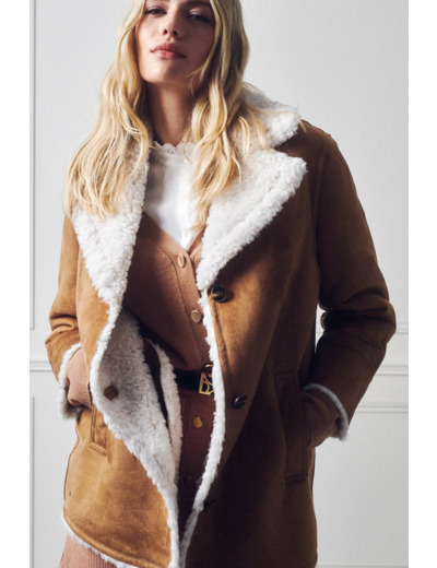 Réponse : Oui, sa coupe mi-longue et son tissu effet daim offrent une bonne protection contre le froid hivernal.