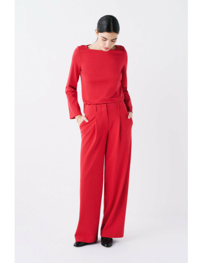 Confectionné dans un tissu fluide mêlant viscose, polyamide et élasthanne, ce pantalon allie confort et tenue impeccable. Ses poches discrètes ajoutent une touche pratique sans compromettre la ligne épurée. Avec une longueur totale de 108 cm en taille 38, il se prête à de multiples associations, notamment avec la blouse Carmin pour un look harmonieux.