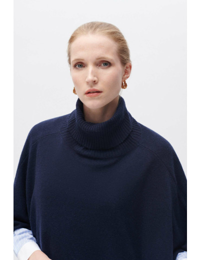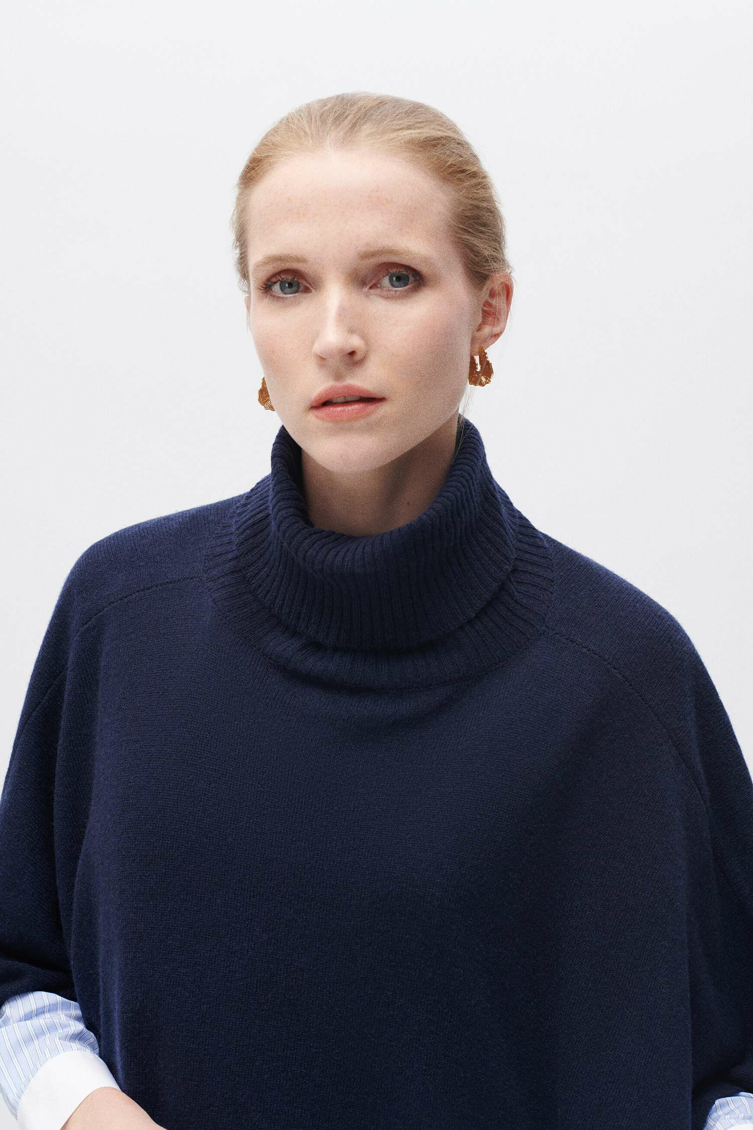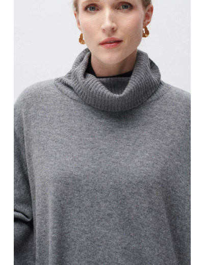 Matière principale : 90% laine, 10% cachemire. Coupe oversize avec col montant, manches courtes et emmanchures basses. Finitions bord-côte pour une tenue impeccable. Longueur 95 cm. Lavage à la main recommandé pour préserver la qualité du tissu.