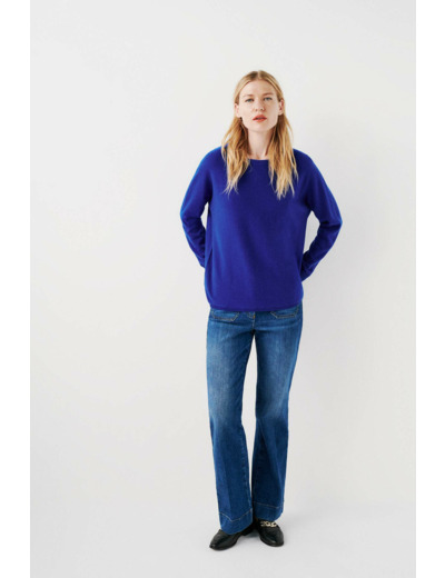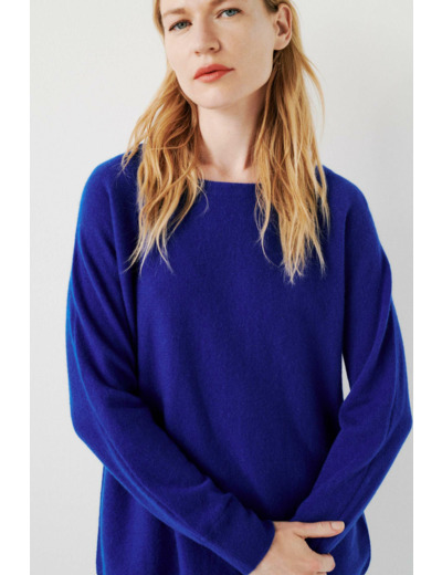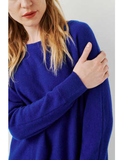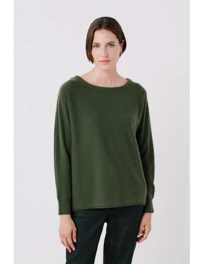 Tissu principal : 100 % cachemire. Coupe ample, col rond, manches longues. Longueur 60 cm pour une taille S. Lavage à la main recommandé pour préserver la qualité du cachemire.
