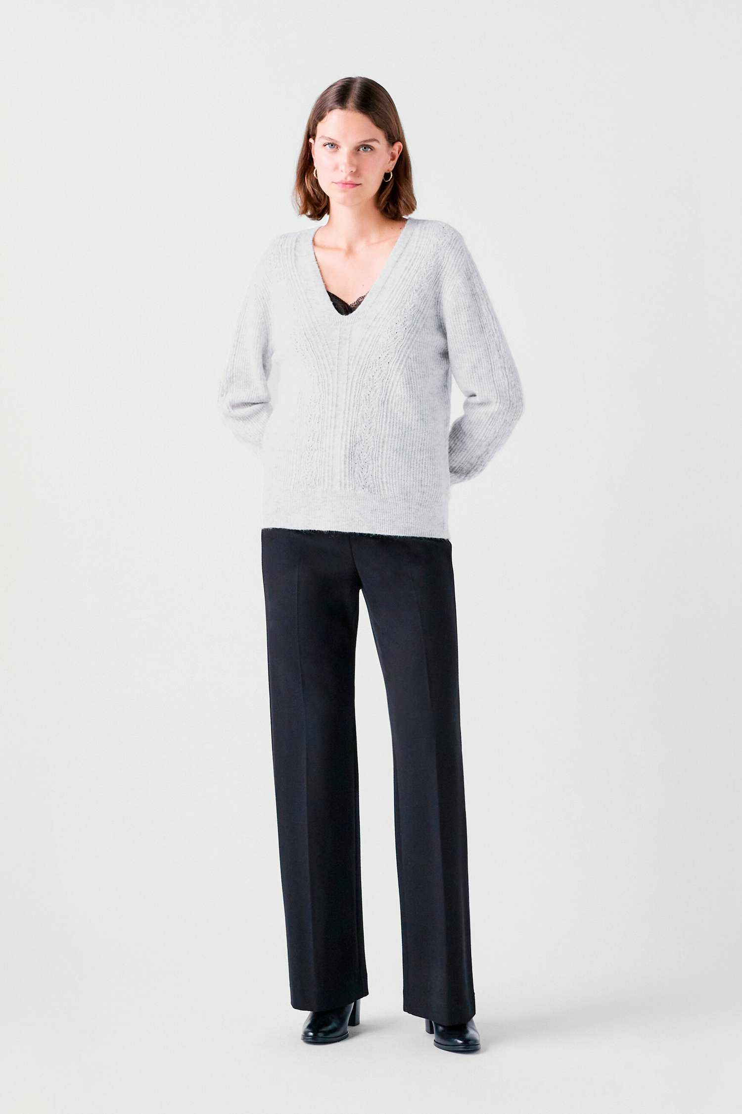 Ce pull vous garantit douceur et chaleur sans compromis sur le style. Sa coupe droite assure un confort optimal tout au long de la journée, tandis que son col V flatte subtilement le port de tête. Facile à assortir, il devient un essentiel polyvalent pour enrichir votre garde-robe hivernale.