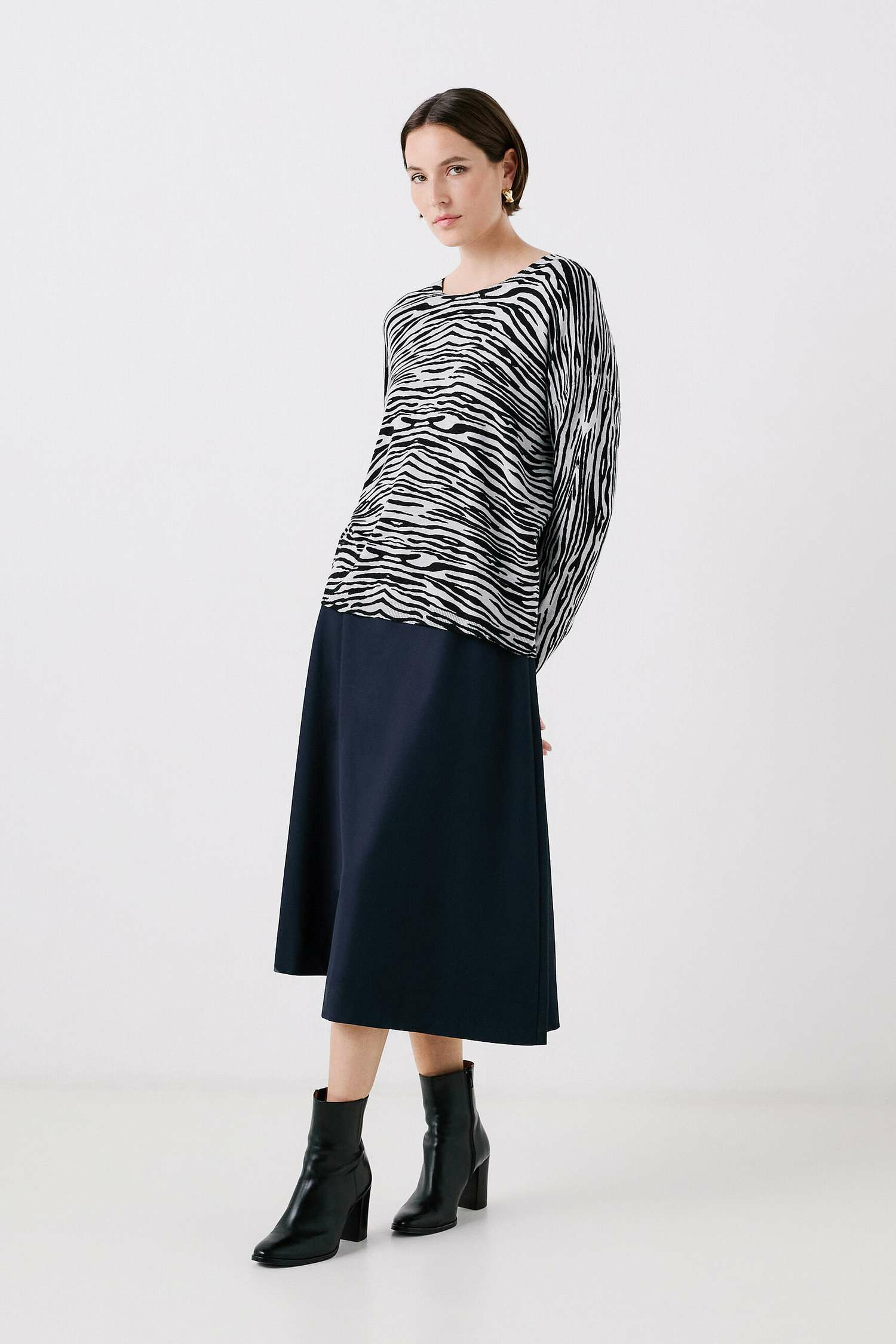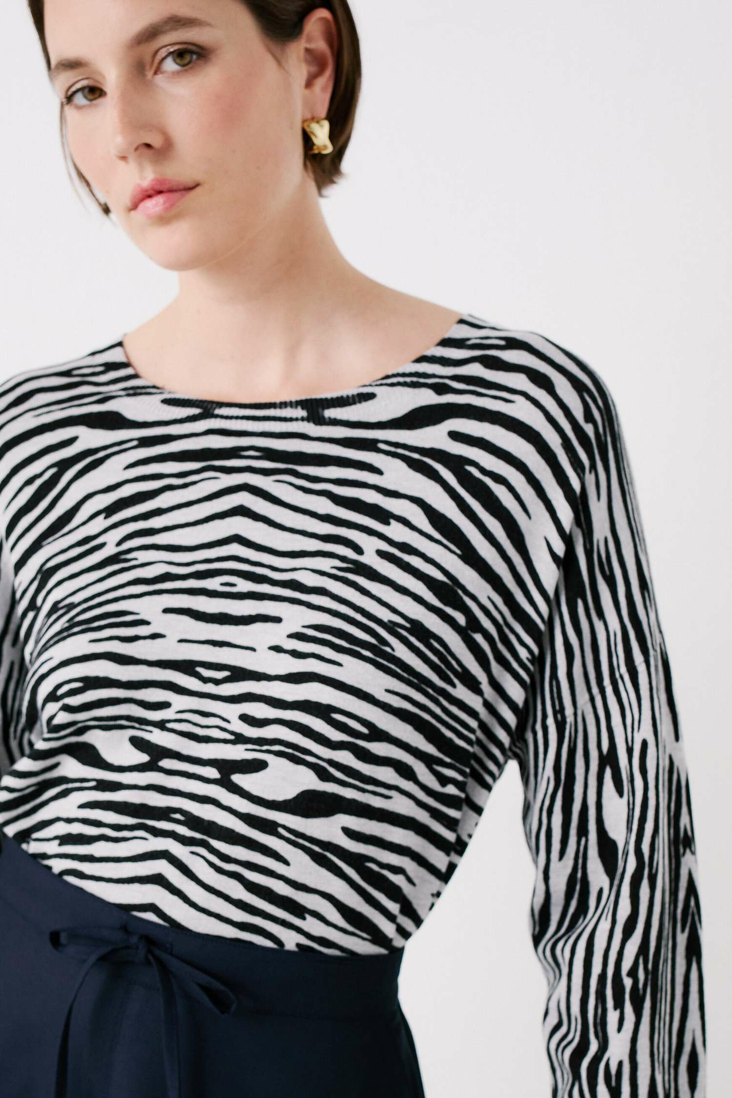 Réponse : Il est conseillé de laver ce pull à la main pour préserver la texture et l’éclat de l’imprimé.