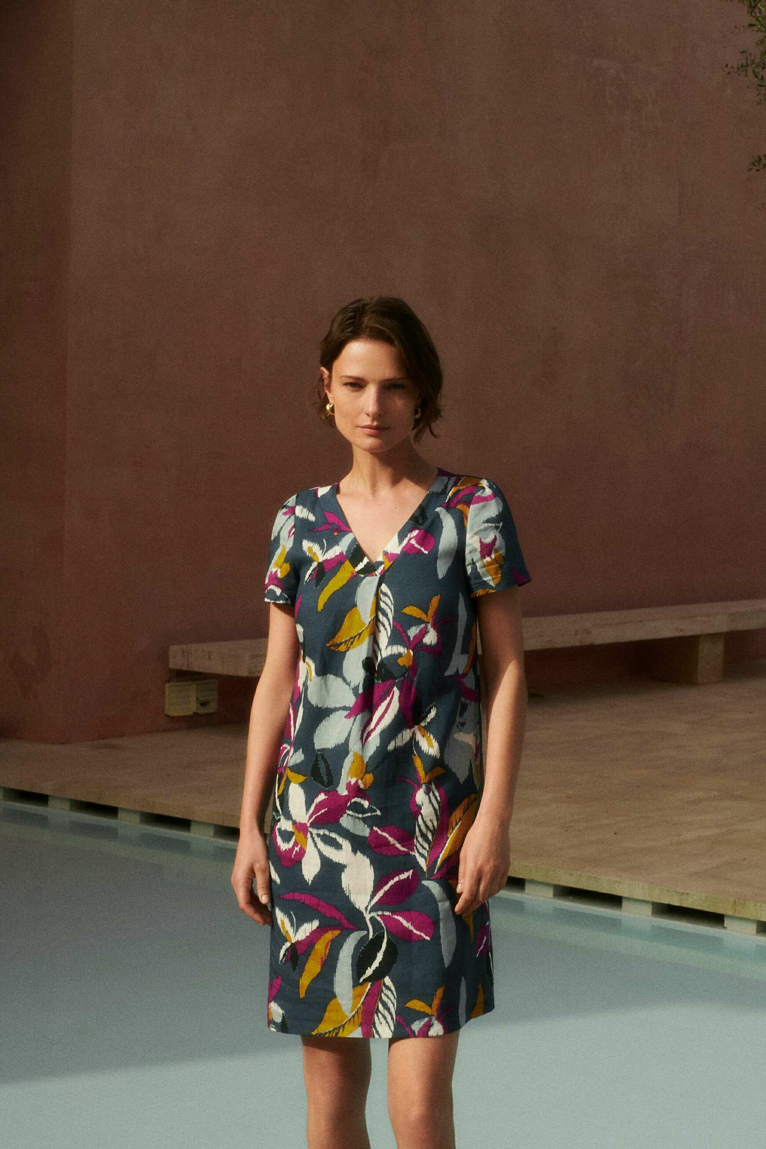 Légère et élégante, la robe Ramela1 incarne la fraîcheur printanière avec son motif floral délicat et sa coupe droite moderne. Une invitation à la simplicité sophistiquée pour toutes vos occasions.