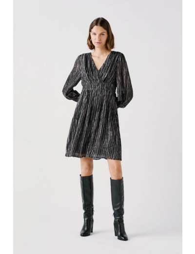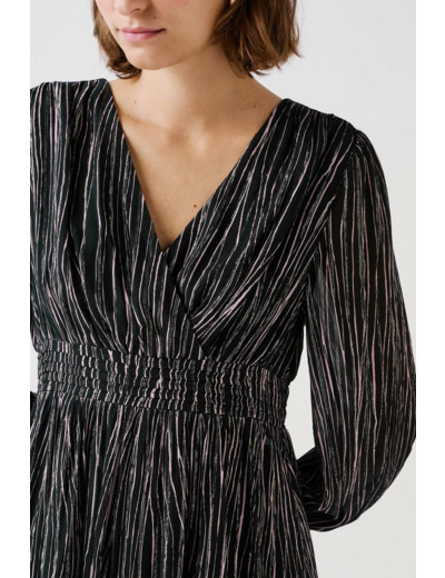 Conçue pour épouser parfaitement vos formes, la robe rgasty valorise votre silhouette tout en restant confortable toute la journée. Son tissu mêlant viscose, soie et fil métallisé apporte un léger éclat et une fluidité qui accompagnent chacun de vos mouvements avec élégance.