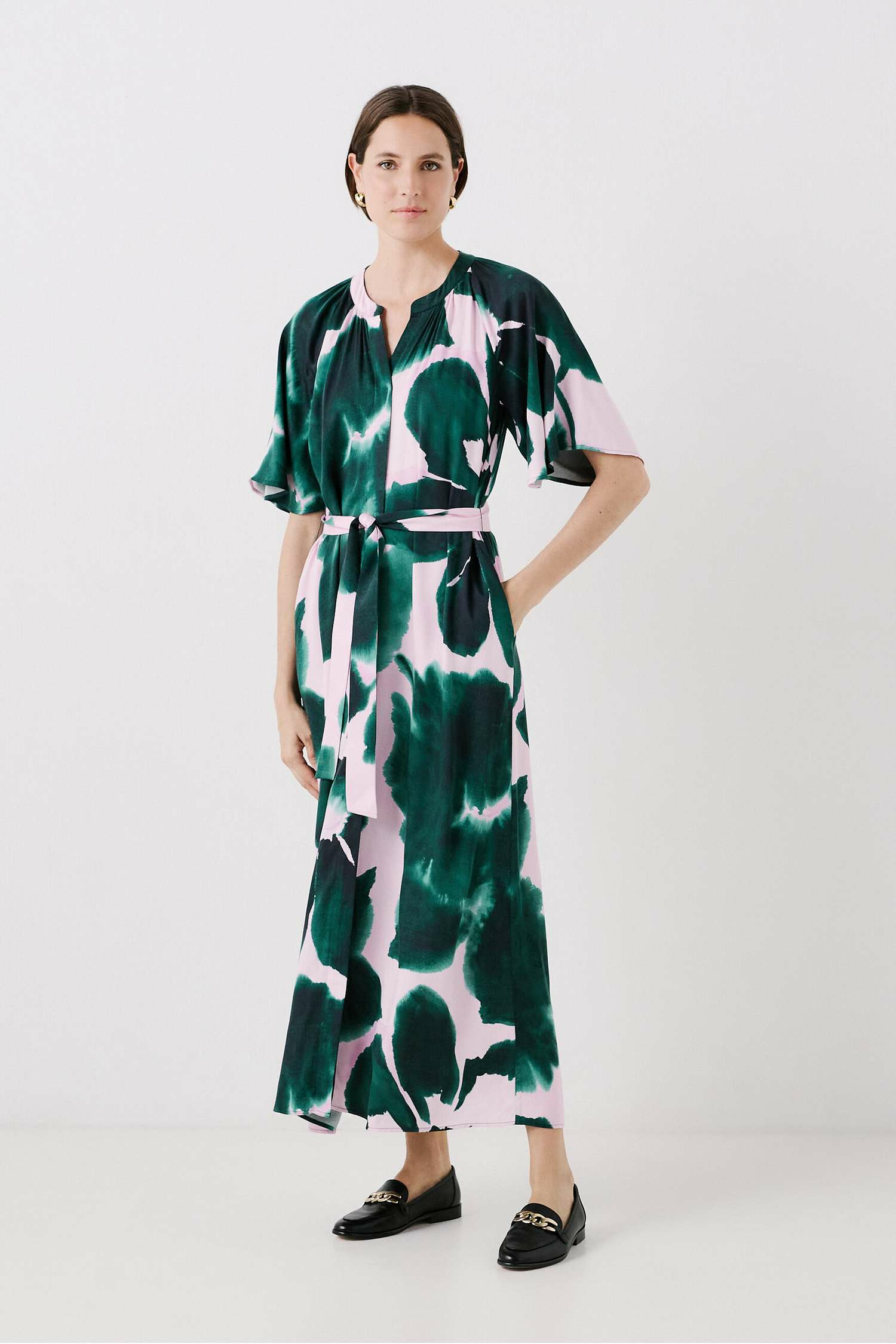Confectionnée en viscose 100%, cette robe longue dévoile une coupe fluide qui épouse délicatement le corps. Son col tunisien et ses manches longues apportent une touche raffinée tandis que la ceinture à nouer souligne la taille pour une allure féminine affirmée. Les couleurs vibrantes de son imprimé floral dynamisent vos looks, parfaits pour toutes les occasions où vous souhaitez allier confort et style.