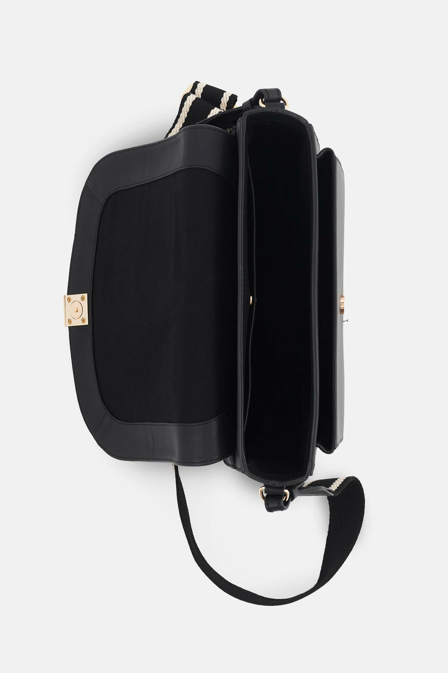 Dimensions précises : L 26 cm x H 22 cm x P 9 cm. Bandoulière en coton réglable de 90,5 cm à 135 cm, amovible. Fermeture par rabat avec fermoir aimanté. Matière principale en cuir de vachette 100 %, doublure en coton 100 %. Nettoyage recommandé avec un chiffon doux et humide, sans lavage.