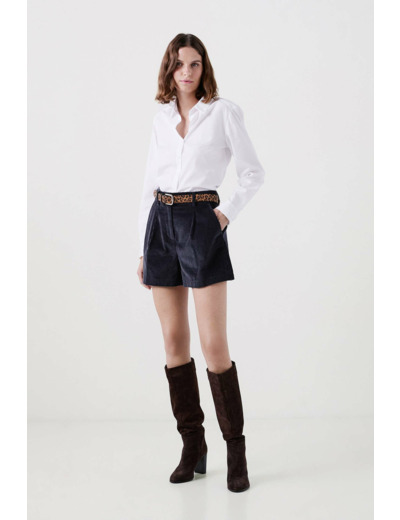 Ce short mesure 41 cm de longueur pour une taille 38. Il se ferme par un bouton et un zip sous patte. Entièrement en coton, il se lave à 30°C avec une action réduite pour préserver la douceur du velours.