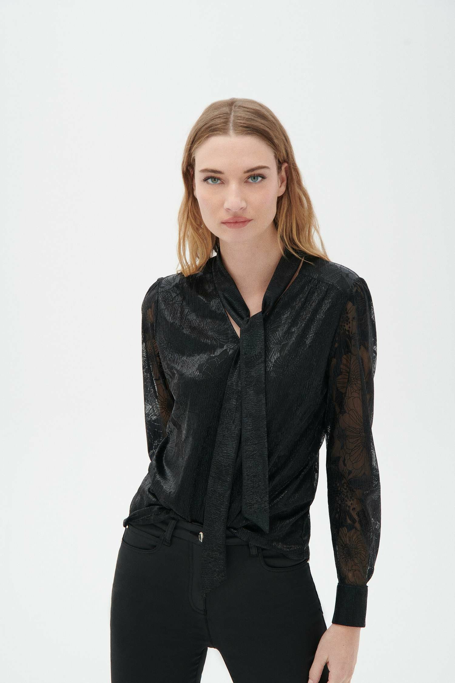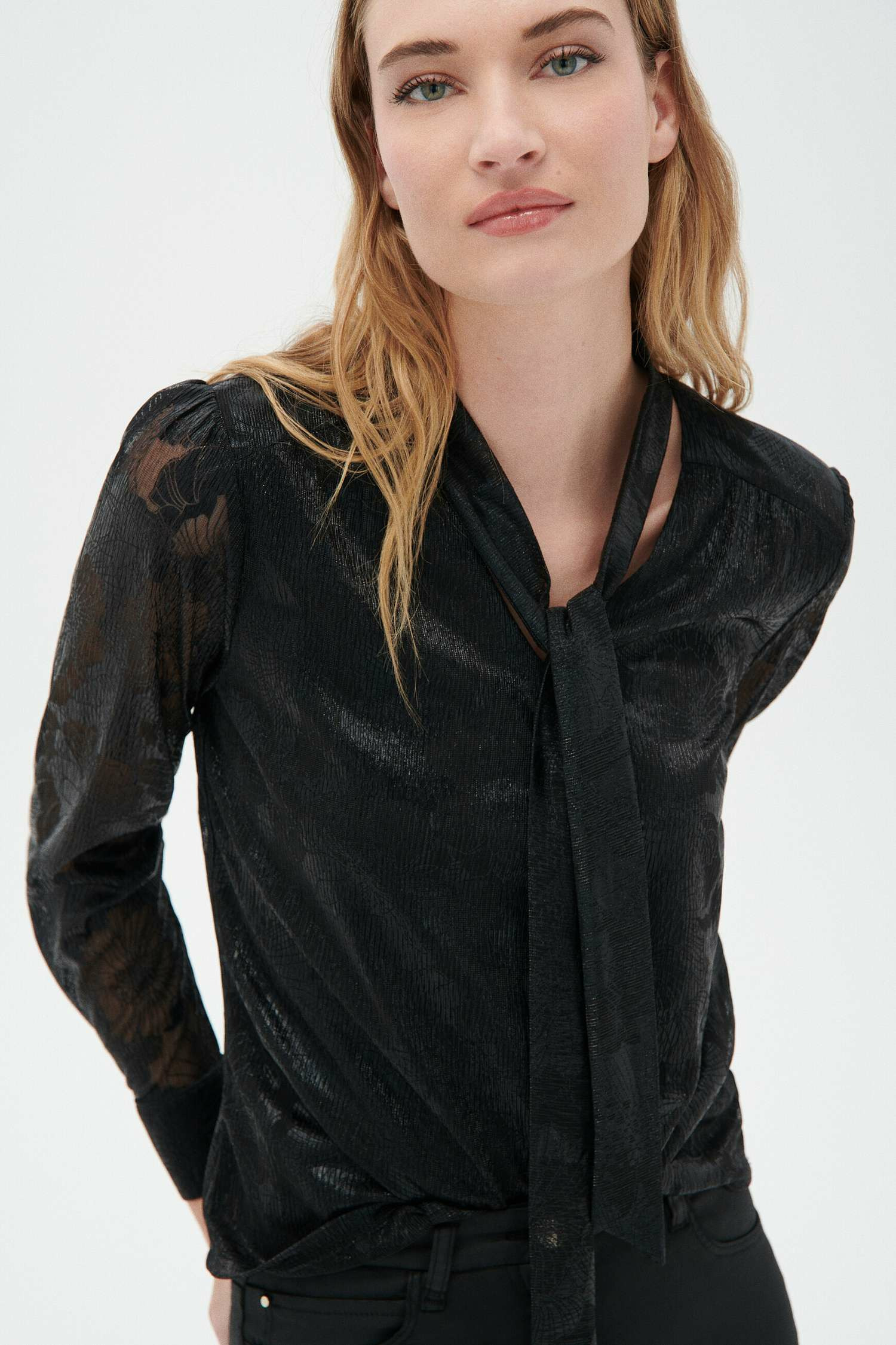 Affirmez votre style avec le t-shirt Tanaka, un incontournable pour sublimer vos looks de soirée. Son col lavallière et son jeu de matières apportent une élégance moderne et raffinée à chaque tenue.