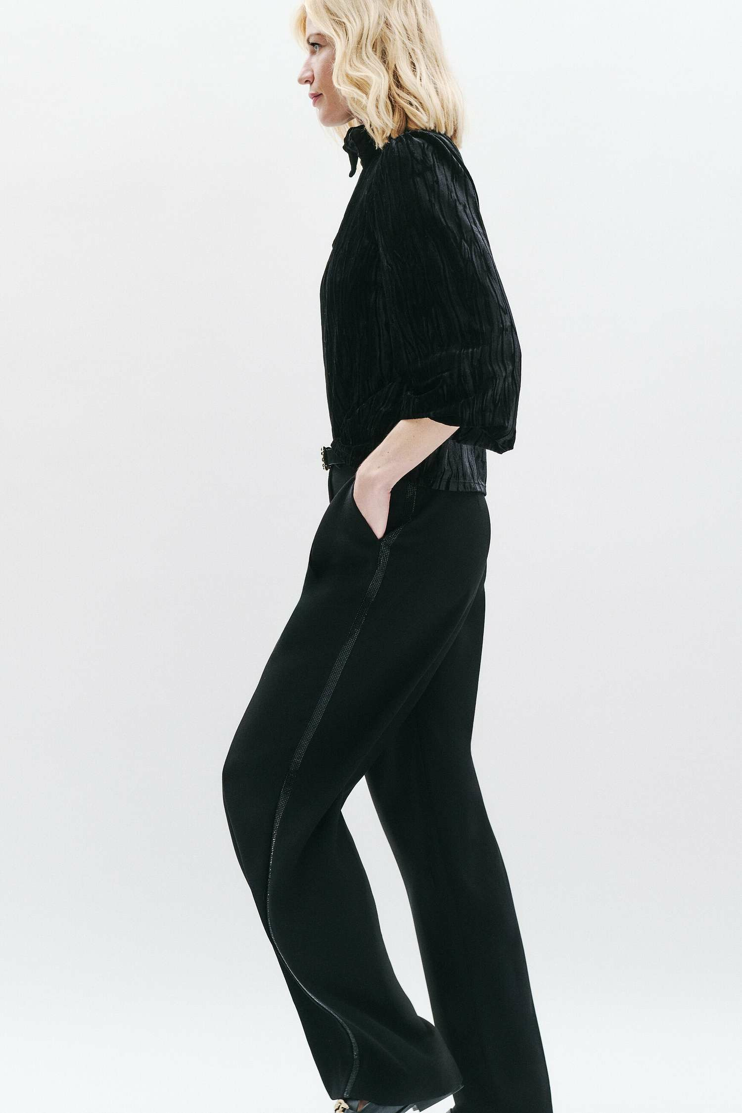 Réponse : Il se porte parfaitement avec un pantalon fluide noir et des escarpins ou une jupe midi structurée et des bottines.