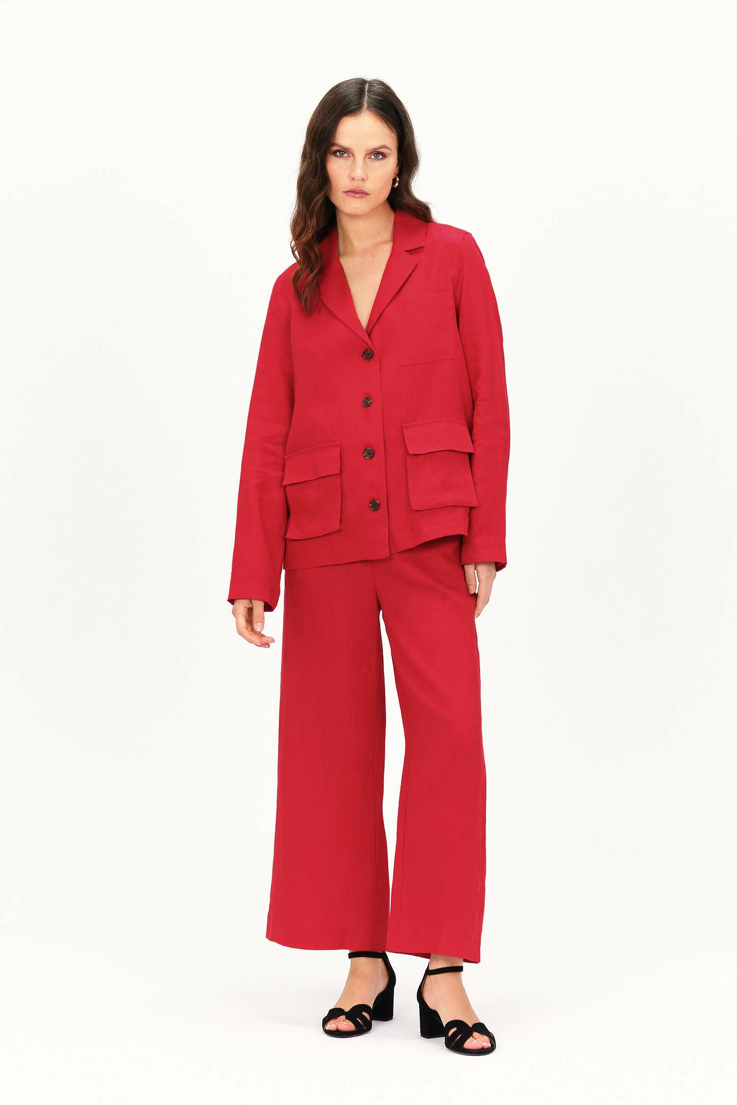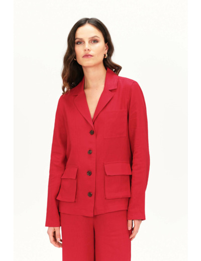 Tissu principal : 100 % lin. Doublure : 100 % viscose. Fermeture par quatre boutons. Col à revers. Manches longues. Poches à rabat sur la taille. Entretien : pas de lavage.