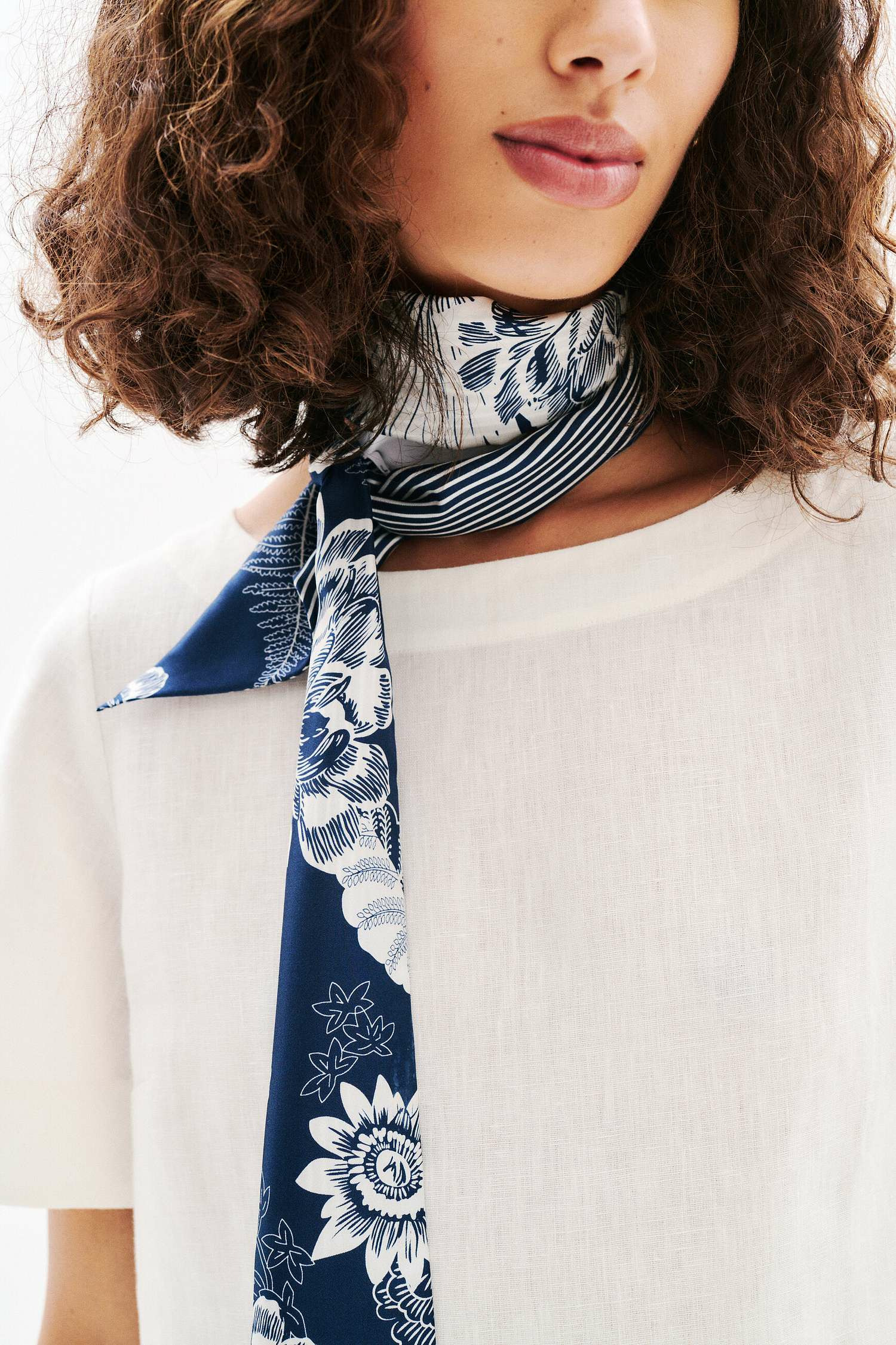 Entretien : lavage à la main à l’eau froide uniquement. Nettoyage à sec et lavage en machine déconseillés. Repassage à basse température (maximum 110°), sans vapeur, avec le foulard retourné.