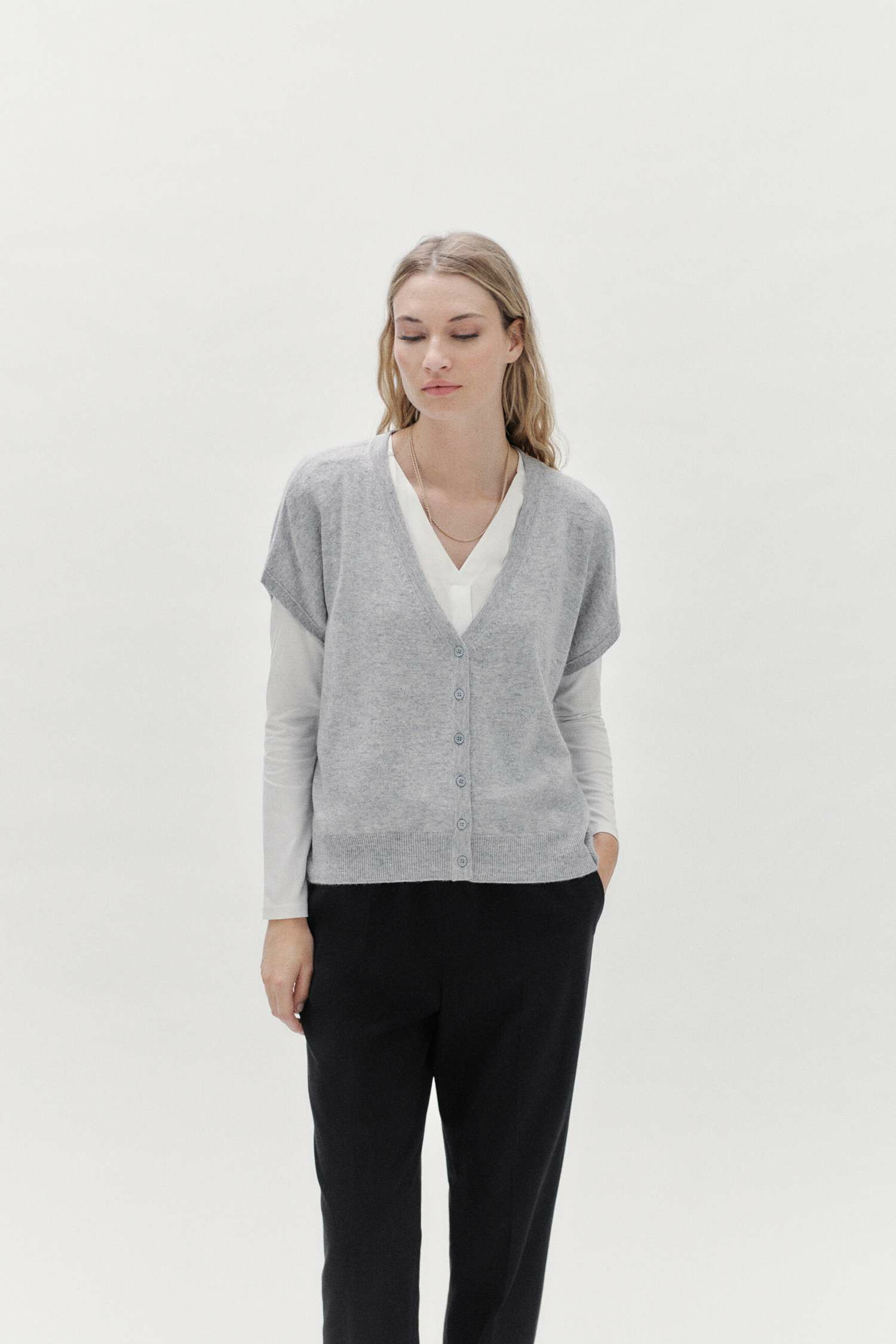 Le gilet Lexie incarne l’élégance décontractée avec son allure oversize et ses manches courtes, parfait pour sublimer votre style en toute saison. Sa matière douce et précieuse enveloppe la peau d’un confort exceptionnel, pour une silhouette moderne et affirmée.