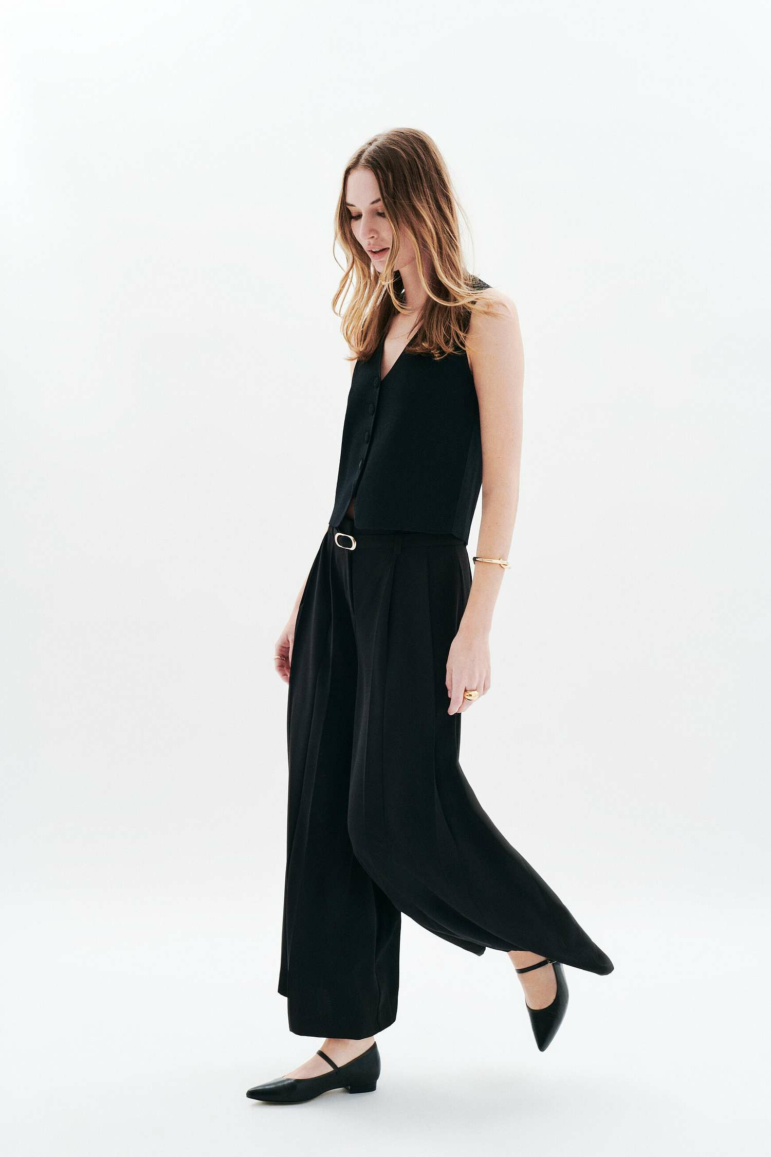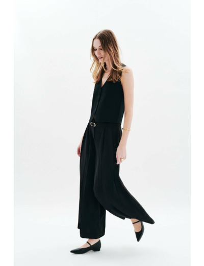 Conçu pour accompagner vos cérémonies et grandes occasions, ce gilet sans manches à col V se porte avec aisance sur une chemise en soie ou une robe fluide. Sa longueur maîtrisée de 51,5 cm (taille S) apporte une touche moderne tout en restant intemporelle, idéale pour structurer votre tenue sans l’alourdir.