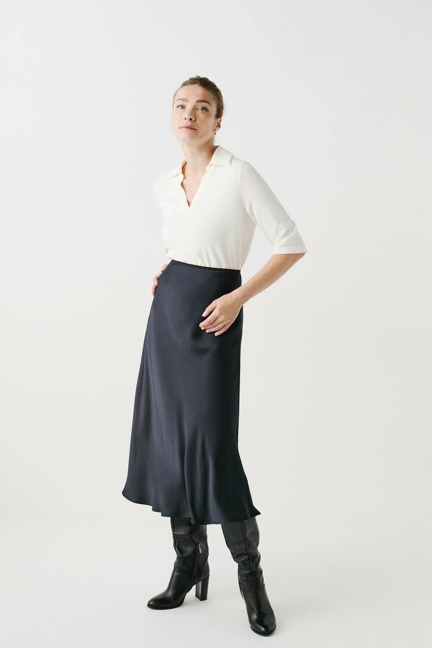 Sombre et élancée, la jupe Jalentina incarne l’élégance discrète pour sublimer vos looks distingués. Sa coupe fluide et sa taille élastiquée offrent un confort sans compromis, pour une allure impeccable en toute circonstance.