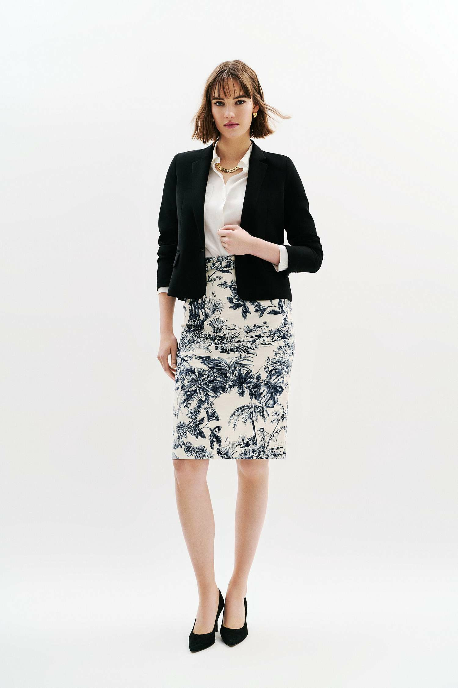 Réponse : Absolument, sa coupe crayon et son motif classique en font une pièce idéale pour un style professionnel chic.