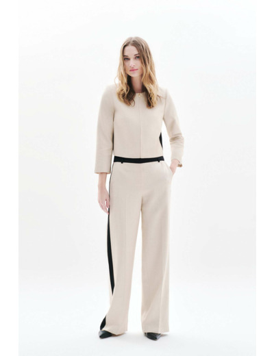 Réponse : Il se porte parfaitement avec la veste Vambras pour un look coordonné, ou avec un haut fluide noir et des sandales plates pour un style décontracté chic.
