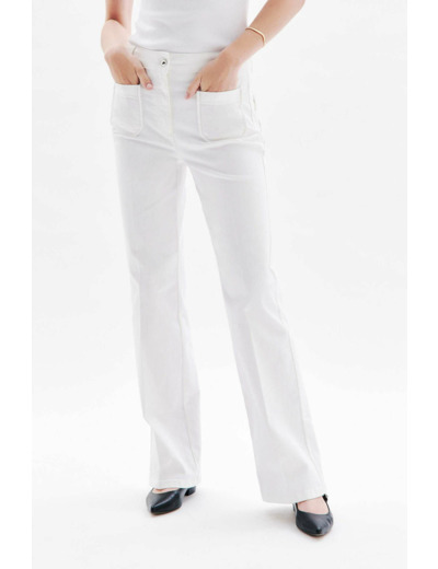 Le pantalon Pelley2 est disponible du 34 au 46, avec une longueur totale de 105 cm en taille 38. Il est composé de 93 % coton, 5 % polyester et 2 % élasthanne, garantissant douceur et élasticité. Pour préserver sa qualité, privilégiez un nettoyage à sec ou un lavage à 30°C en cycle délicat, toujours sur l’envers. Le repassage doit se faire à basse température (maximum 110°) sans vapeur, et l’usage du sèche-linge est déconseillé.