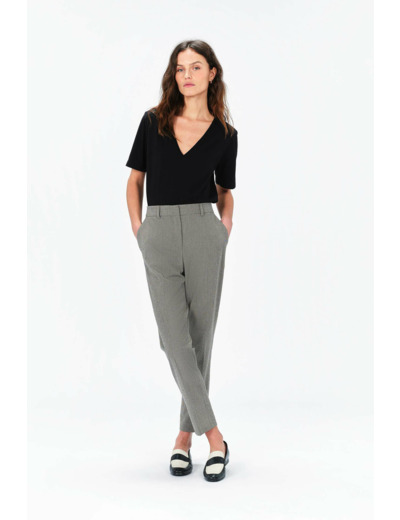 Ce pantalon vous garantit une allure soignée et un confort optimal tout au long de la journée grâce à son tissu légèrement stretch. Facile à associer, il s’adapte à toutes vos envies, du bureau à une sortie en ville, en apportant une touche de raffinement subtile.