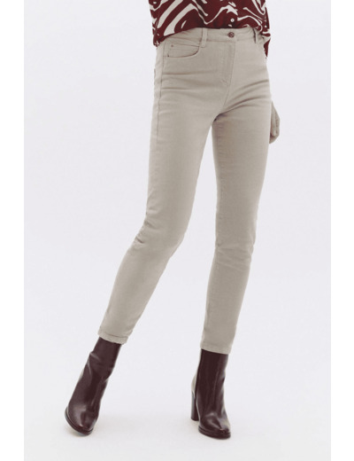 Tissu principal : 98 % coton, 2 % élasthanne. Doublure : 100 % coton. Coupe casual avec fermeture bouton et zip sous pattes. Ceinture montée avec passants. Modèle 5 poches. Longueur entrejambe : 74 cm. Lavage recommandé à 30 °C.