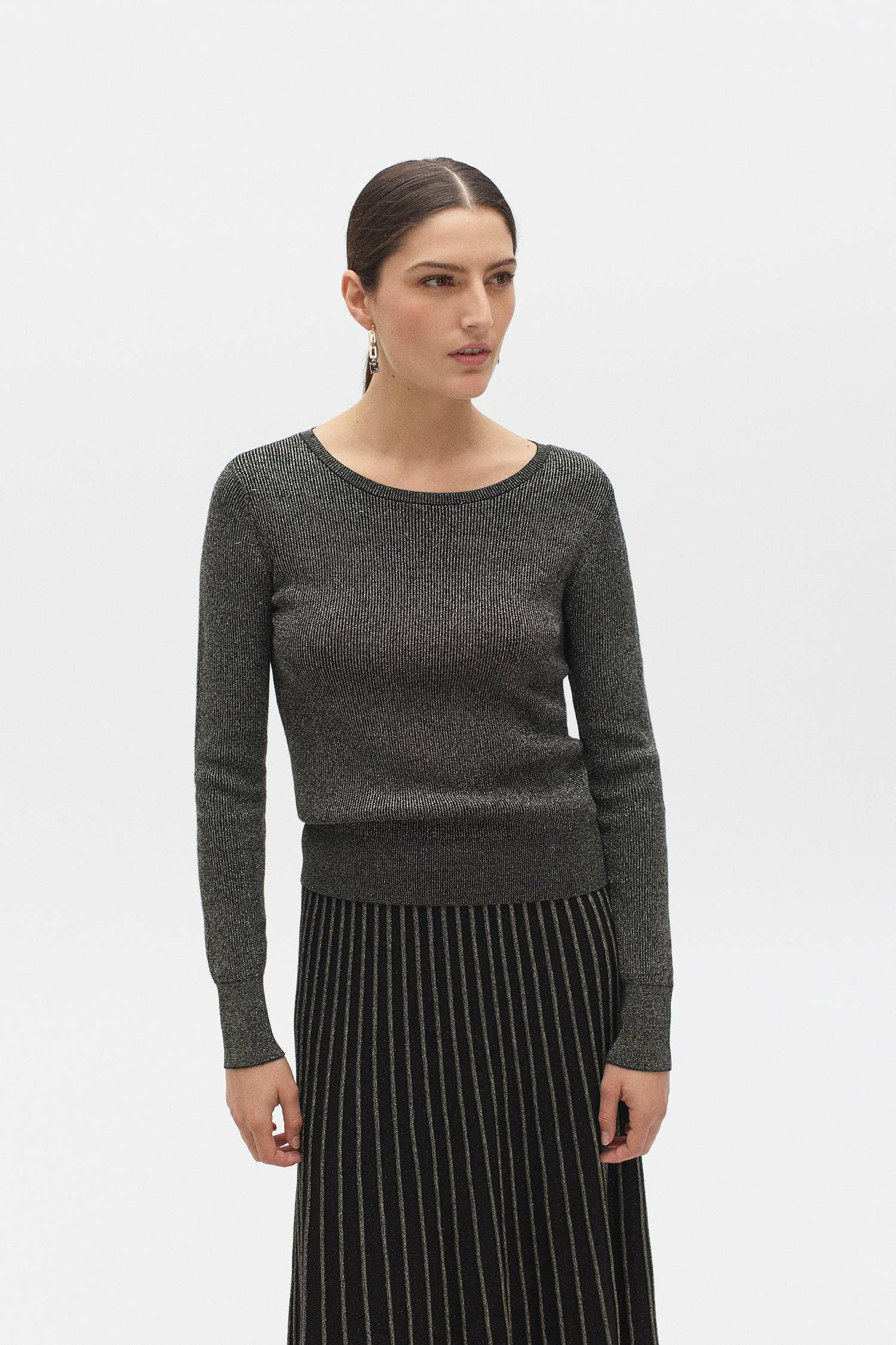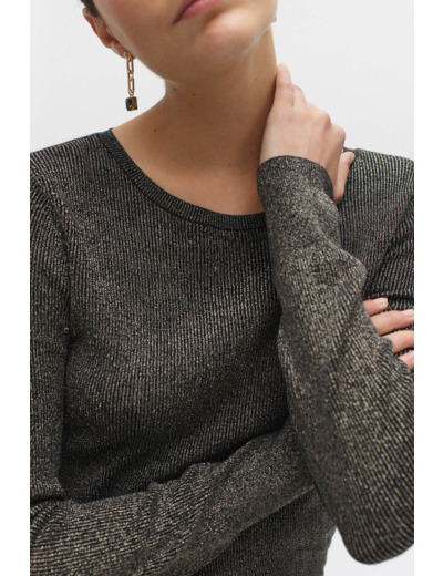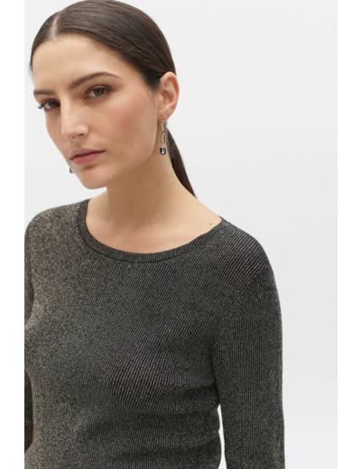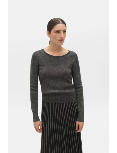 Le pull Katia illumine votre garde-robe avec une subtile touche scintillante. Sa maille côtelée mêlée à des fils Lurex apporte une élégance discrète à chaque tenue.