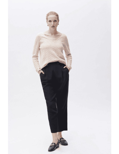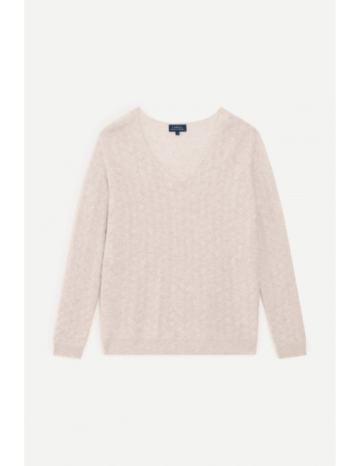 Cette maille exclusive, issue de la capsule Cachemire Chapitre, se distingue par ses torsades délicates qui apportent une texture riche et sophistiquée. Sa coupe droite et son col V offrent une silhouette moderne et facile à porter, idéale pour une tenue chic en toutes occasions. La chaleur naturelle du cachemire vous enveloppe sans alourdir, pour un confort durable tout au long de la journée.