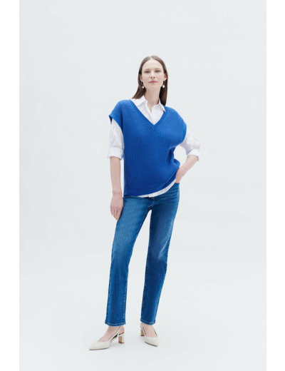 Réponse : Oui, sa composition douce permet un port direct sur la peau, mais il s’accorde aussi très bien avec une chemise en dessous.