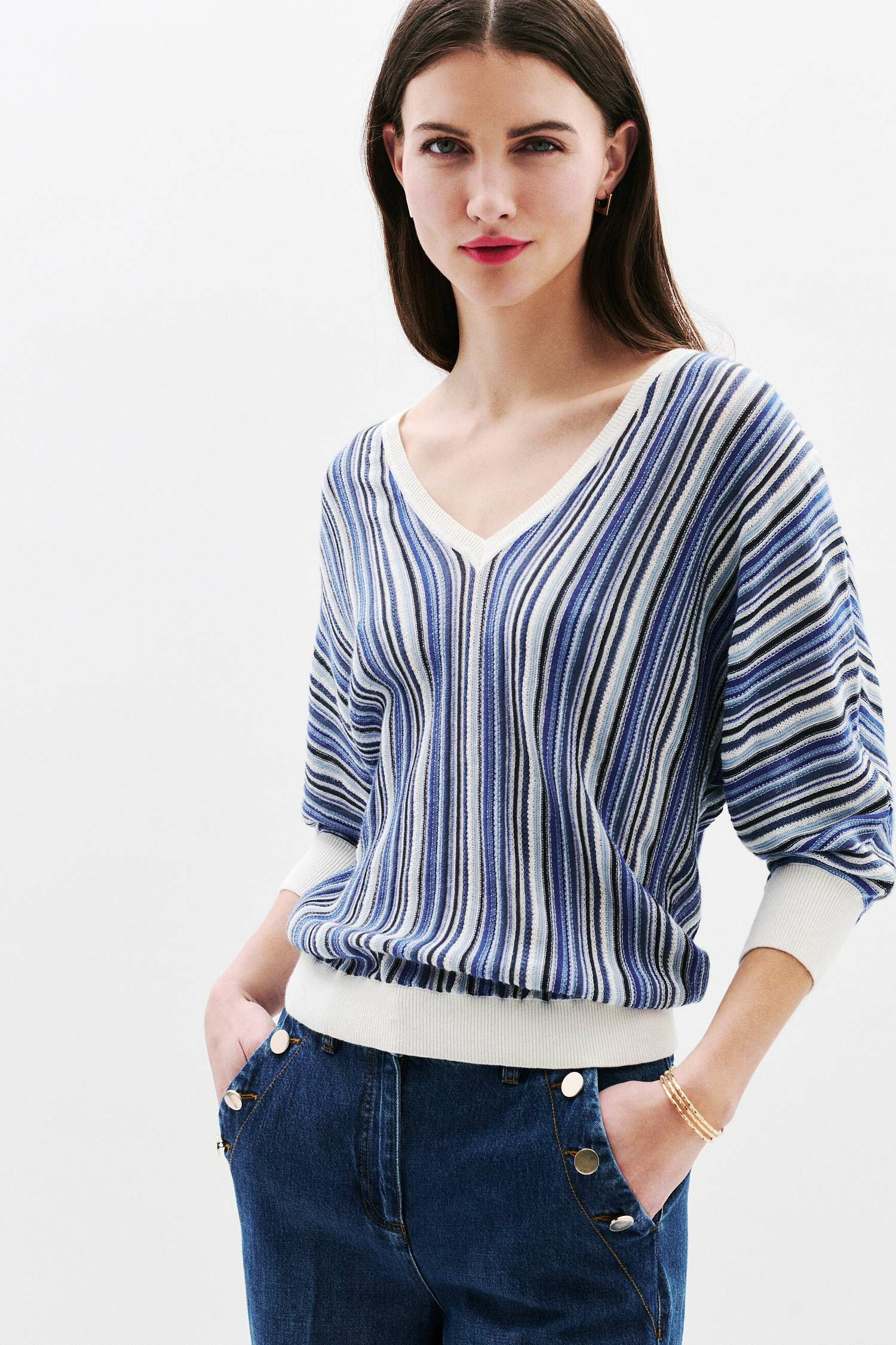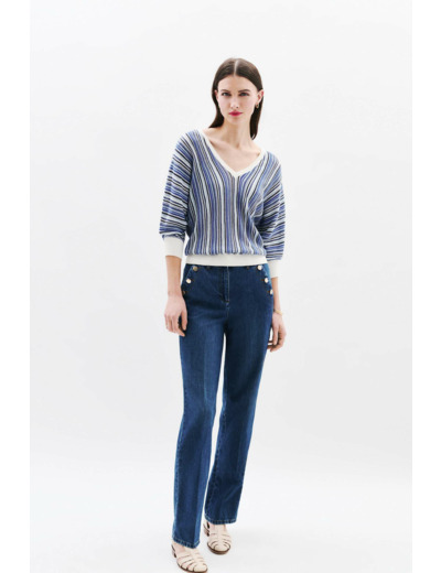Confectionné dans un mélange de lin et coton, ce pull offre une légèreté parfaite pour s’adapter aux variations de température. Ses manches trois-quarts et sa longueur maîtrisée assurent un confort optimal tout en restant chic. Polyvalent, il se porte aussi bien avec un jean à boutons apparents pour un style casual soigné qu’avec une jupe midi et des escarpins pour une allure professionnelle affirmée.