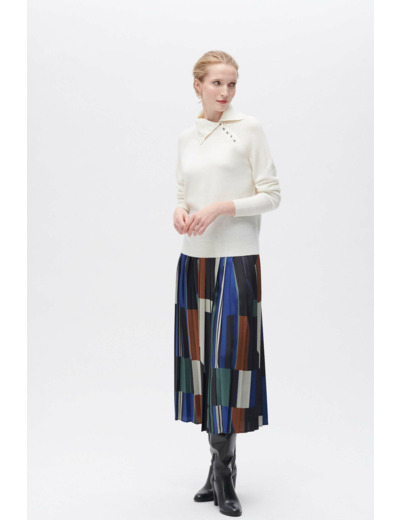 Son col à revers, fermé par une boutonnière discrète sur le côté, apporte une touche d’originalité raffinée qui se démarque sans effort. Réalisé en laine RWS 100%, ce pull doux et chaud enveloppe votre silhouette avec des finitions soignées, notamment des surpiqûres aux emmanchures et des bord-côtes aux manches longues, garantissant une tenue impeccable et durable. Disponible en plusieurs coloris, il s’adapte à toutes vos envies saisonnières.