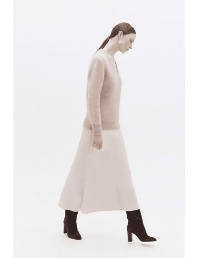 Tissu principal composé de mohair (38%), acrylique (29%), polyamide (22%), laine (10%) et élasthanne (1%). Longueur de 62 cm pour une taille S. Lavage à la main recommandé pour préserver la qualité et la douceur du tissu.