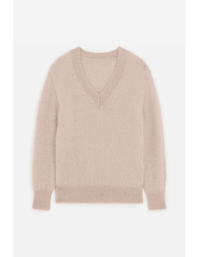 Réponse : Le pull est composé de mohair, acrylique, polyamide, laine et élasthanne pour un mélange doux et confortable.