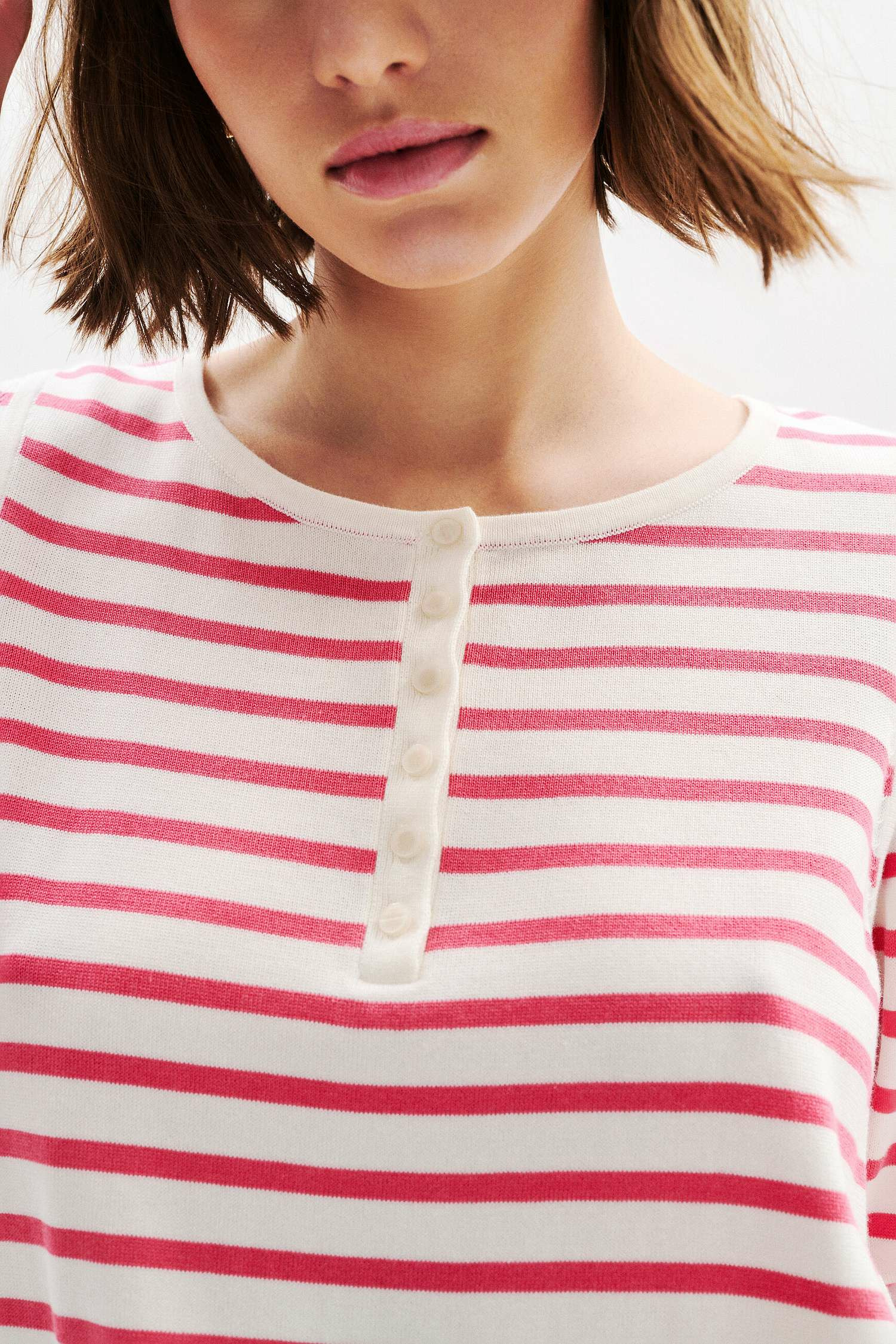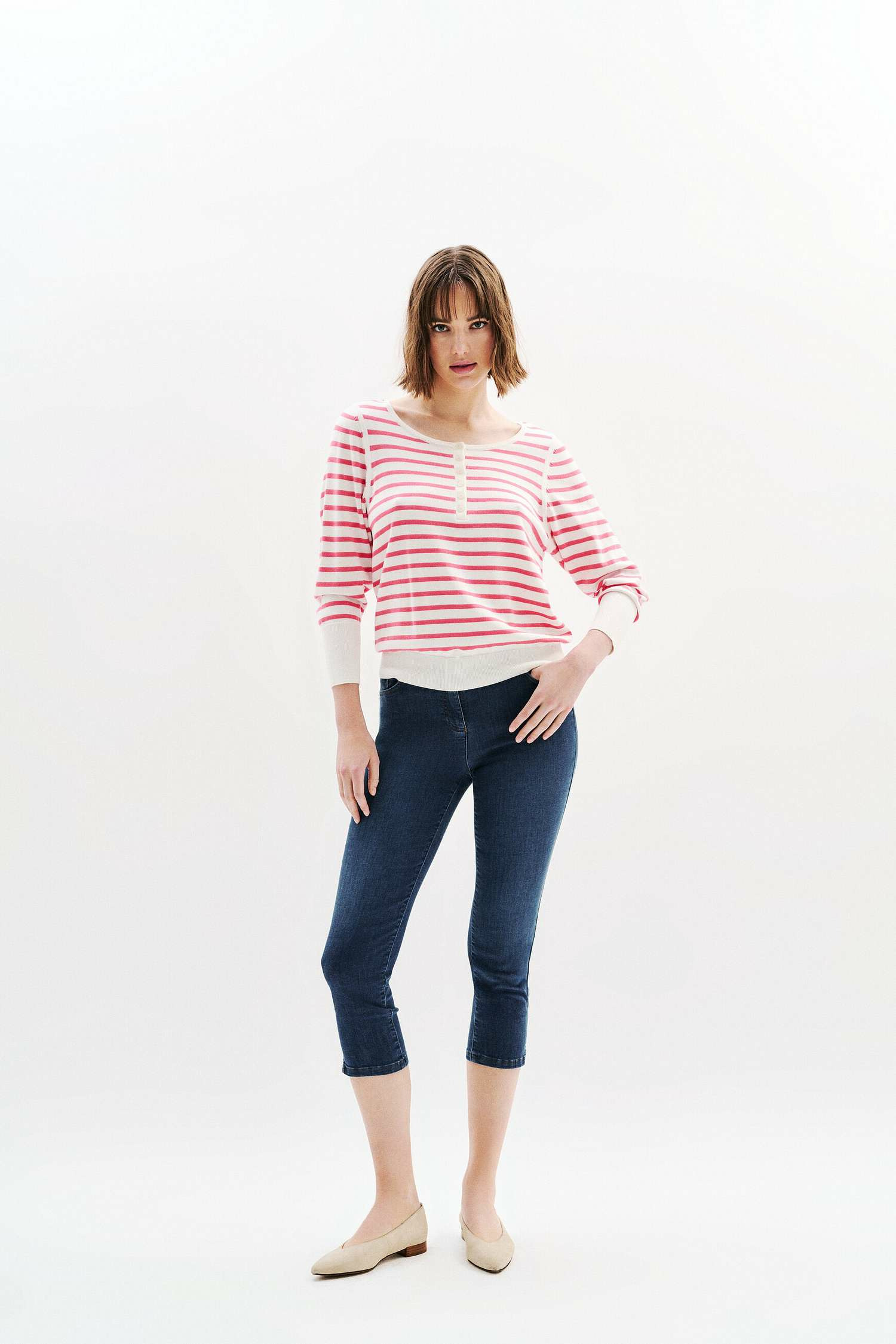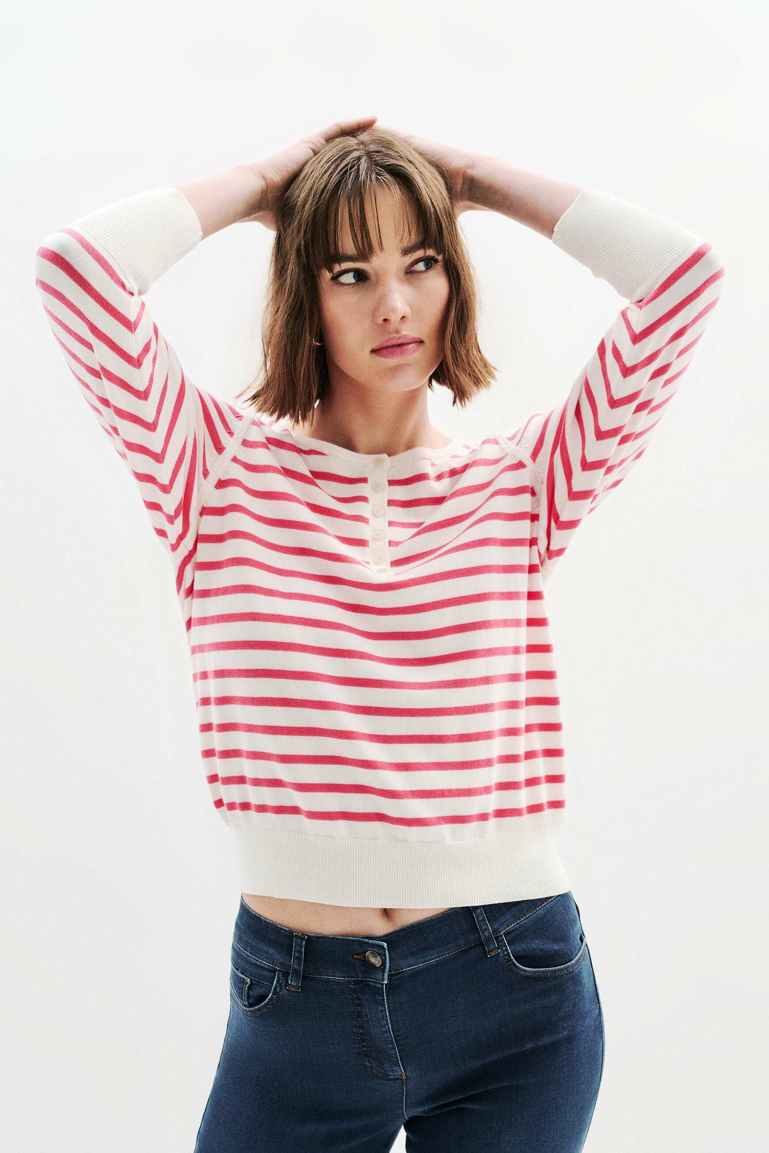 Confectionné dans un mélange doux de modal et coton, ce pull col tunisien aux manches trois-quarts offre une sensation de confort inégalée tout en restant léger. Sa longueur maîtrisée de 58,5 cm pour une taille S assure un tombé parfait, facile à associer à toutes vos tenues. Polyvalent, il s’adapte aussi bien à un jean brut et des baskets pour un style casual chic qu’à une jupe midi fluide et des bottines pour une allure féminine et contemporaine.
