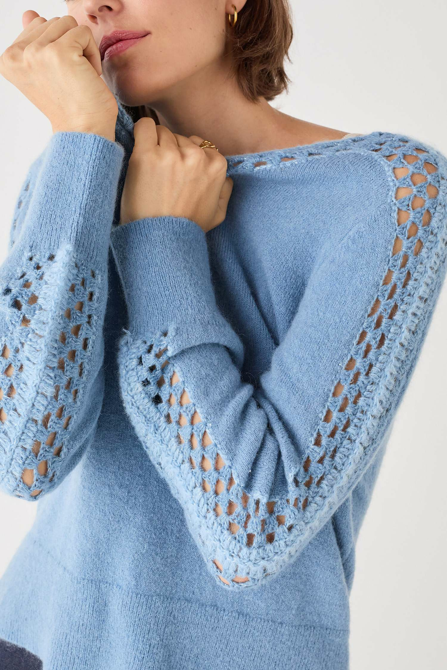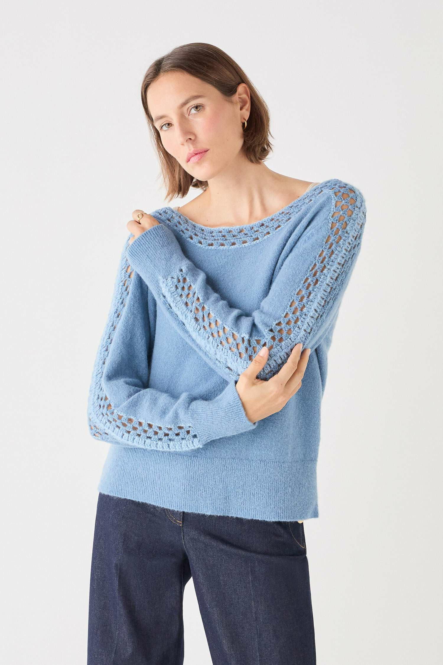 Tricoté dans un mélange raffiné de laine et de mohair, ce pull offre une douceur exceptionnelle et une chaleur légère. Sa longueur maîtrisée de 58 cm pour une taille S garantit un tombé parfait, facile à associer, que ce soit avec un pantalon évasé en denim ou une jupe midi fluide. Le Mlily apporte une touche chic et moderne à toutes vos tenues, du bureau aux sorties en ville.