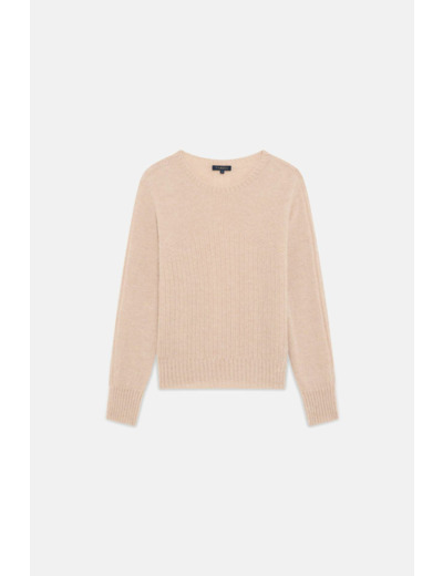 Conçu dans un mélange précieux d’alpaga et de laine, ce pull droit à col rond épouse naturellement la silhouette tout en offrant une chaleur enveloppante. Sa coupe simple et ses manches longues en font une pièce versatile, idéale pour sublimer vos looks quotidiens avec une touche raffinée. Le fil métallisé apporte une subtile brillance, soulignant discrètement son caractère unique.