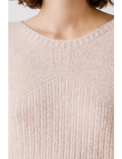 Tissu principal : 35% polyamide, 27% alpaga, 26% acrylique, 9% laine, 3% fil métallisé. Longueur 57 cm en taille S. Lavage à la main recommandé à l’eau froide, repassage à basse température (maximum 110°) sans vapeur. Nettoyage à sec, machine et sèche-linge interdits pour préserver la qualité des fibres.