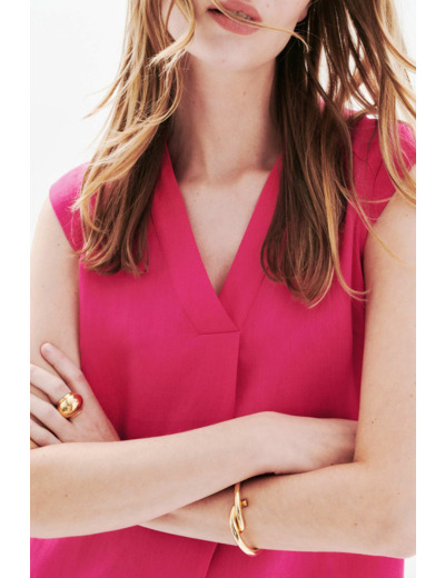 Conçue pour allier confort et style, cette robe sans manches dévoile une encolure en V agrémentée d’un large pli plat, apportant une touche de sophistication discrète. Ses mancherons couvrent délicatement les épaules tout en sublimant les bras, offrant une silhouette harmonieuse et légère. Facile à enfiler, elle accompagne aussi bien vos journées à la plage que vos soirées habillées, à accessoiriser selon vos envies.