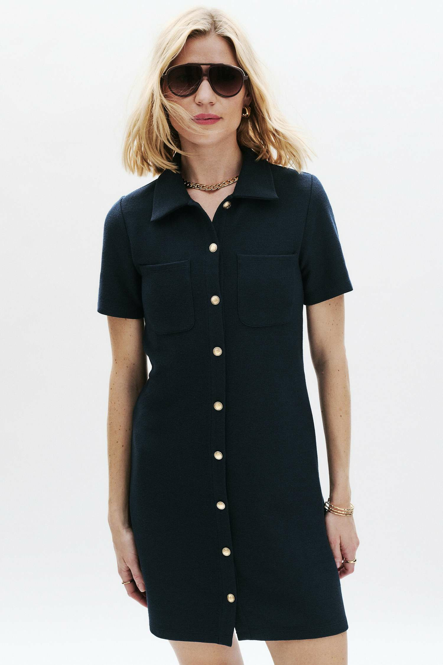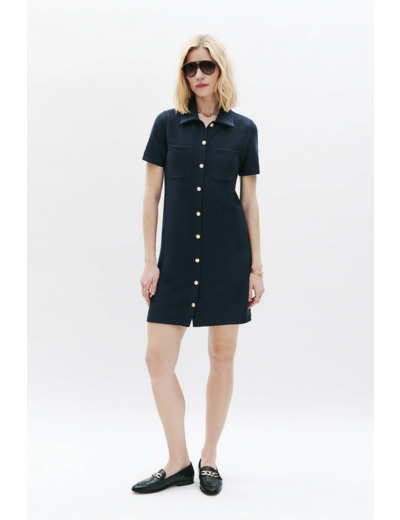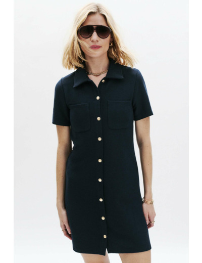 Conçue pour accompagner vos rendez-vous professionnels comme vos sorties, cette robe se distingue par son col chemise et ses manches courtes, apportant une touche structurée et moderne. Sa longueur de 88 cm en taille S assure un équilibre parfait entre confort et sophistication.
