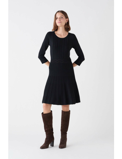 Réponse : La robe est composée de 52% viscose et 48% polyamide, garantissant douceur et légèreté.