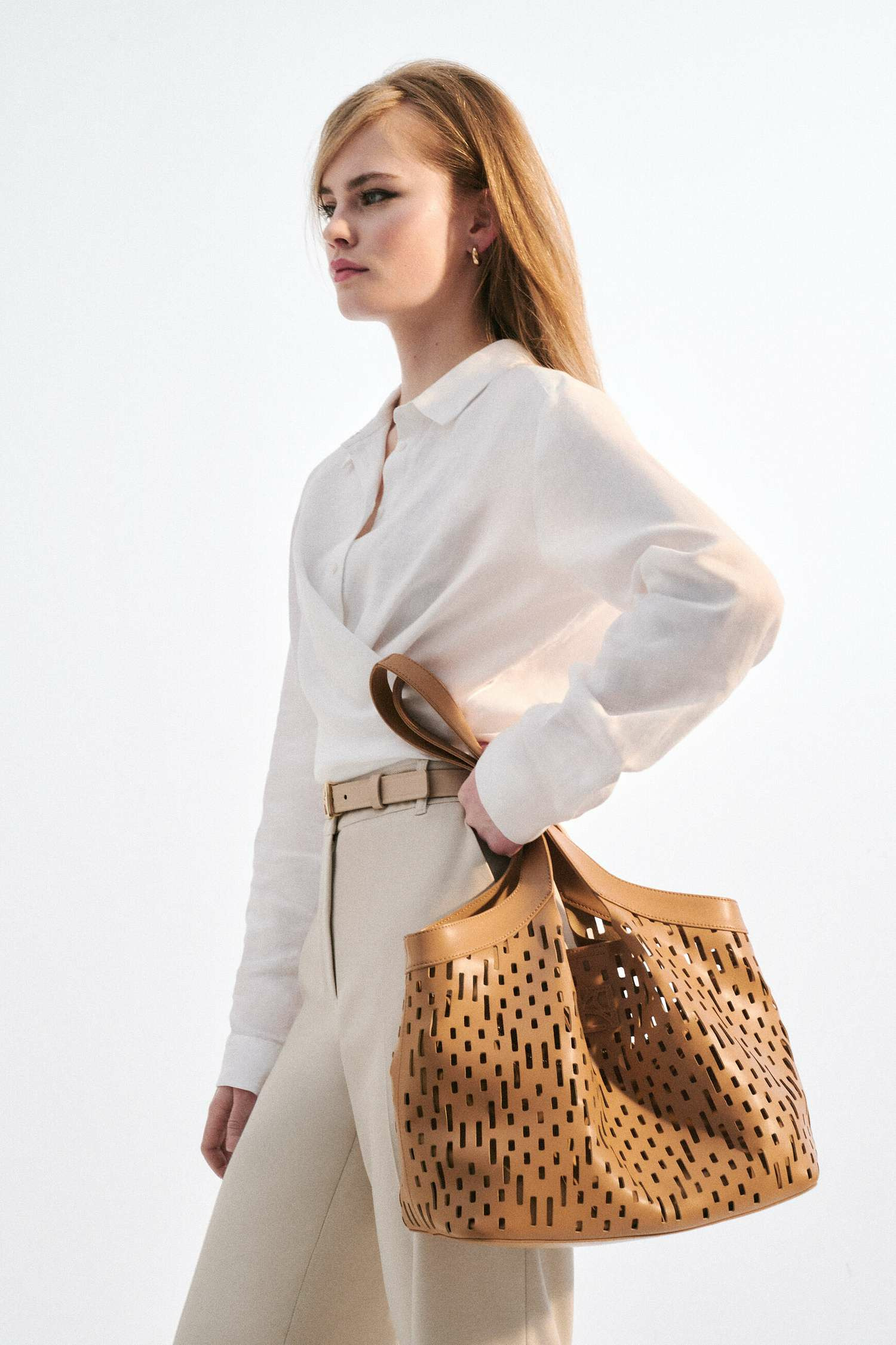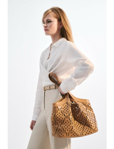 Alliez modernité et élégance au quotidien avec le sac Sachalia, un cabas au design ajouré et aux lignes épurées. Sa silhouette architecturale et son monogramme débossé apportent une touche contemporaine à votre tenue.