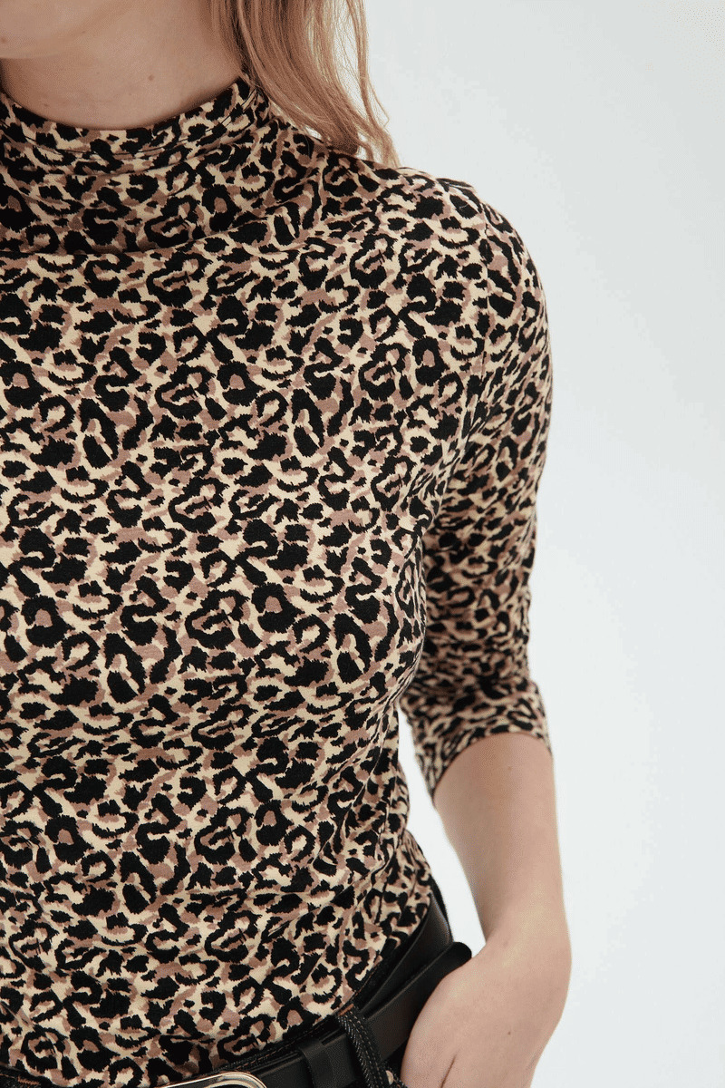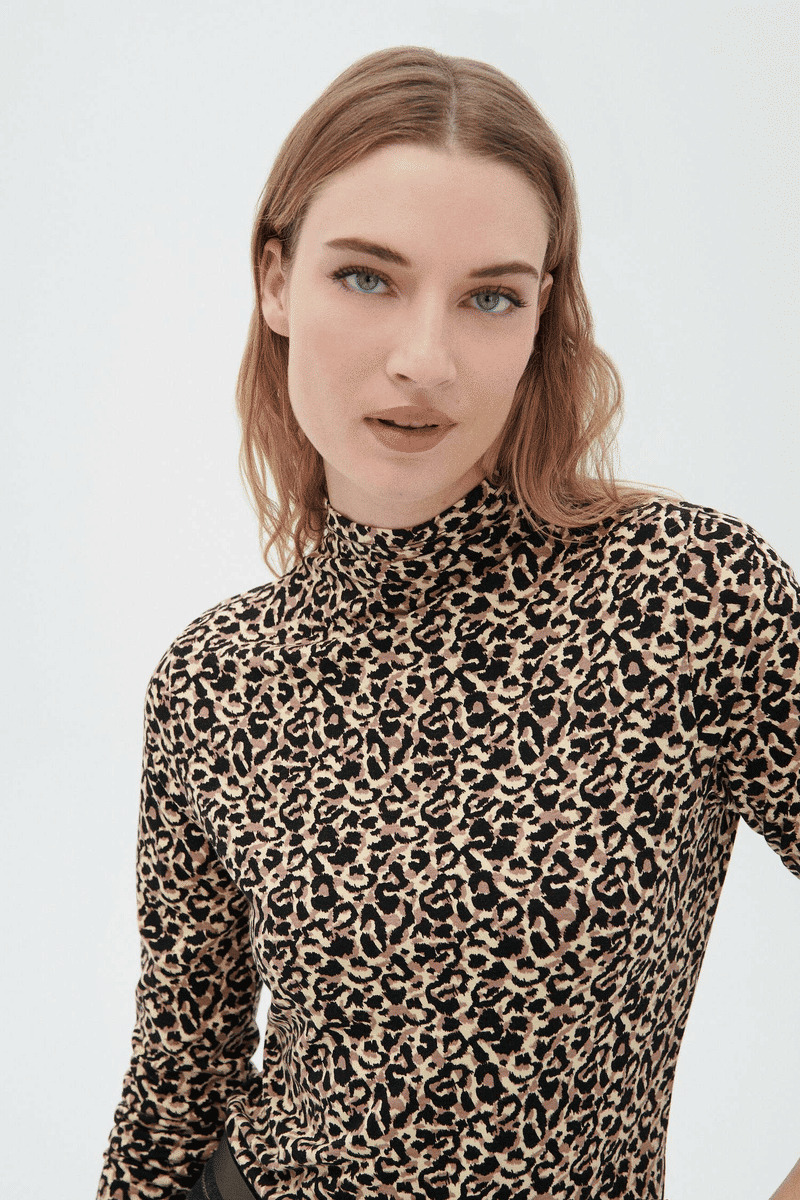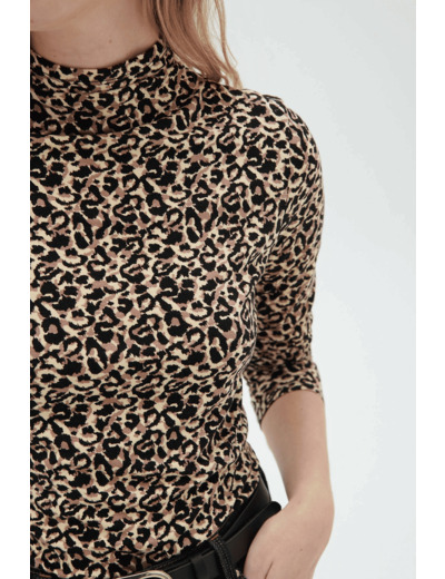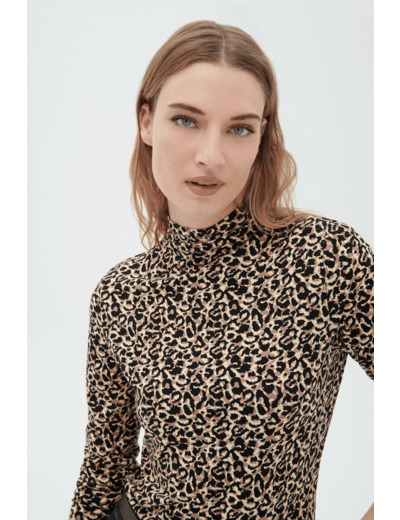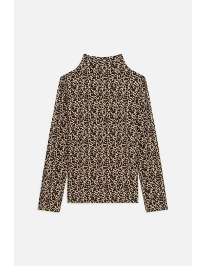 T-shirt manches longues, coupe droite, col cheminée. Longueur de 62 cm pour une taille S. Composition : 95 % viscose, 5 % élasthanne. Lavage conseillé à 30 °C pour préserver la qualité du tissu.