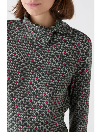 Question ? Quel est le motif du t-shirt Tanoushka ? Réponse. Il arbore un motif violet hypnotisant qui apporte une touche fantaisie à votre tenue.