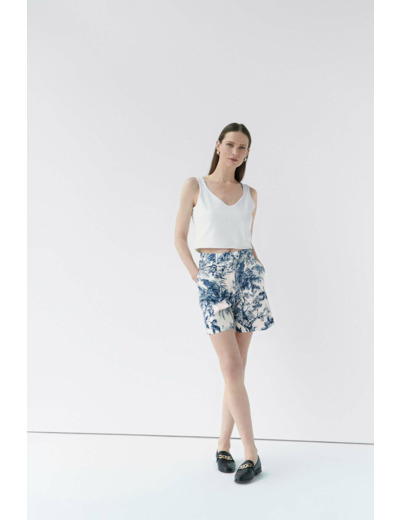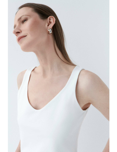 Tissu principal composé de 46% coton, 46% modal et 8% élasthanne. Col en V, sans manches, coutures aux finitions invisibles. Longueur 45 cm pour une taille S. Lavage conseillé à 30°C avec action réduite pour préserver la qualité du tissu.